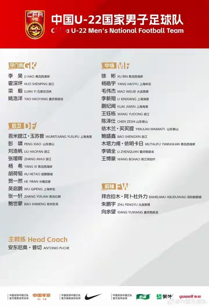 中国U23亚洲杯备战开始啦!“美甲哥”汪仕钦恶意领红牌正式被弃,申花前锋刘诚宇也落选,安东尼奥从来对刘诚宇就不感冒,前锋线拜合拉木、向余望和朱鹏宇依然是安东尼奥最爱,灵魂核心王钰栋必不可少,留洋荷乙王博豪亚预赛征服安东尼奥,继续入选,依木兰继续有幸参加亚洲杯,其它像蒯纪闻、李新翔、木塔力甫、毛伟杰、杨皓宇和李镇全等人息数入选,最惊喜的是18岁表现神勇的守门员姚浩洋首次入选。 这次中国U23国足29人全是精兵强将,可以说是目前中国最强阵容了,这个阵容有潜力,希望安东尼奥能率中国队U23亚洲杯打出好成绩,中国队加油!