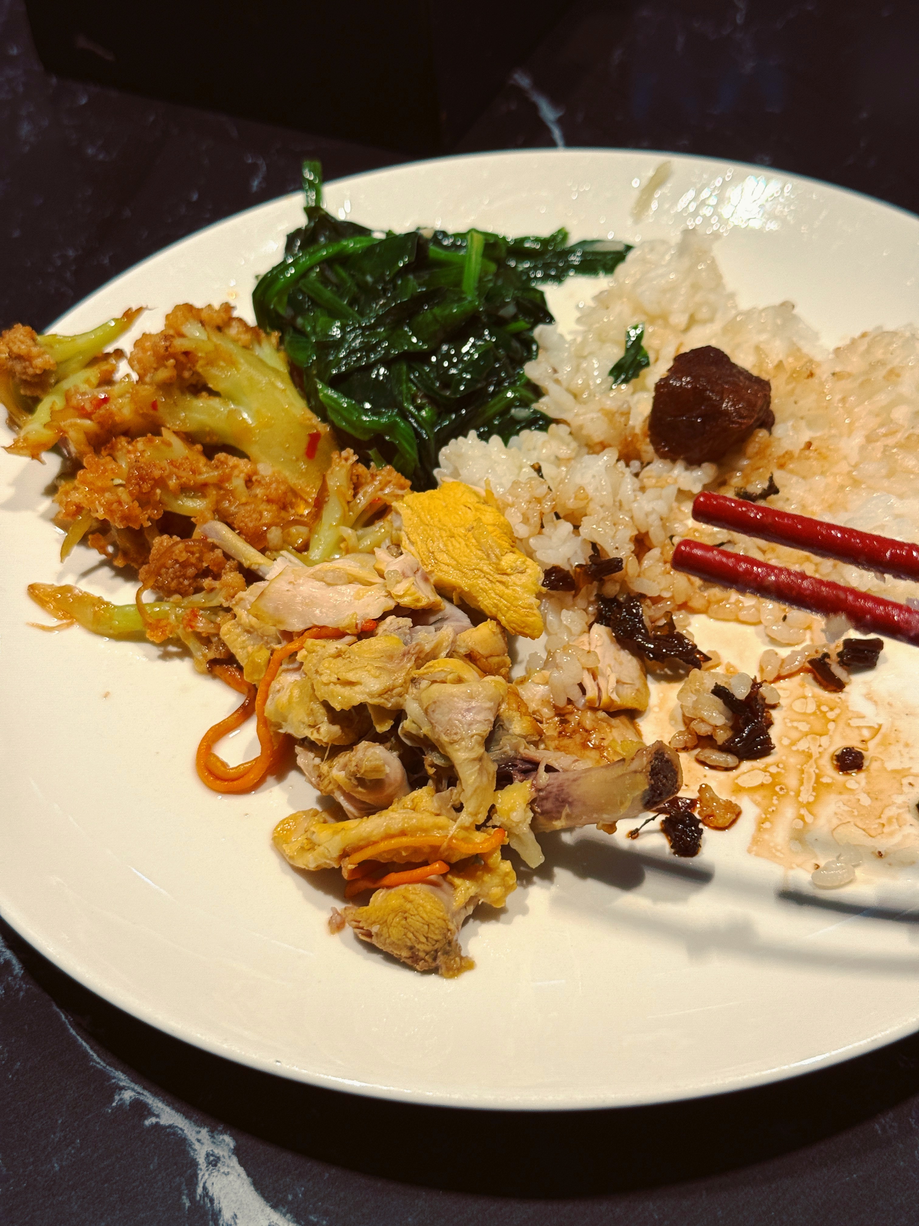 今日晚餐,排骨、鸡肉、菠菜、菜花🥦米饭o一杯长岛冰茶迎接周末我的日常plog