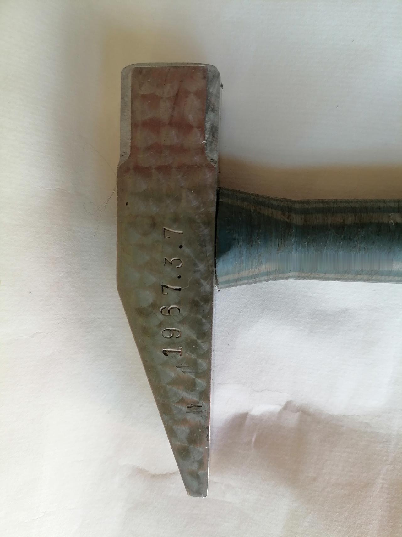 一把不锈纲工具锤的故事 我是七十年代初参加工作到当时的八八六厂机修厂的。 后来当了一名维修钳工。我的师傅叫戴焕成,河南人。他原来是该厂加工车间的划线钳工,也就是按照图纸上零部件的加工尺寸,在将要对进行车床洗床刨床等设备上加工的零部件上面划上线,便于这些工序上加工的师傅操作时掌握和量尺寸。 后来他改行当了维修钳工。这把不锈钢小工具锤,从图片上打的字头看,是他自己找了一块比较厚的不锈钢材料请别的同事加工了一部分,他自己又在锤心钻孔之后在锤面上抺了凡尓砂又研了花,然后用字头在锤头的一面打上886三个字的厂名,又在锤头的另外一面打了67.3.7的字头日期,说明制作于1967年3月7号,锤柄是找电木棒他自己动手做的。 我当了他几年徒弟,出徒之后没有几年七十年代中期他四十来岁因病去世了。他去世一年多,厂工会为了照顾困难职工家庭特意安排我去他老家取了他姑娘的有关资料后上报公司(1972年6月26日根据冶金部文件将原冶金工业部886厂改名为冶金工业部金川有色金属公司),后来我师傅的姑娘被安排到公司冶炼厂工作。 而我师傅用过的这把不锈钢工具锤,也成为了我的一个纪念品。