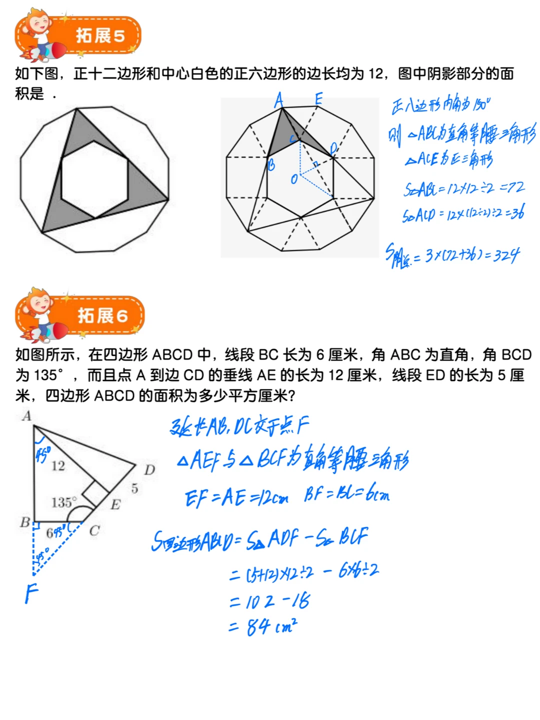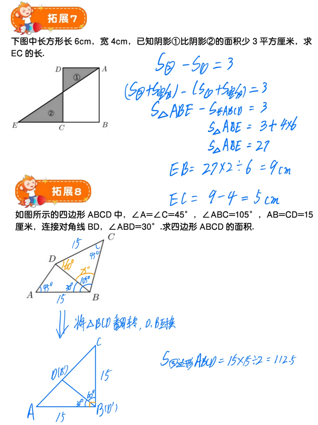 🌈【小学数学几何:巧求面积拓展练习作业】
