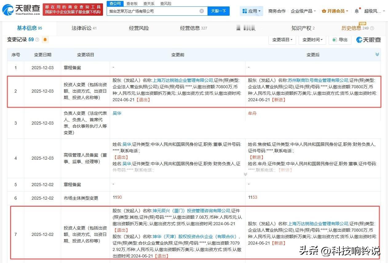 【万达赎回万达广场后又转让 万达再次转让烟台芝罘万达广场】 天眼查工商信息显示,