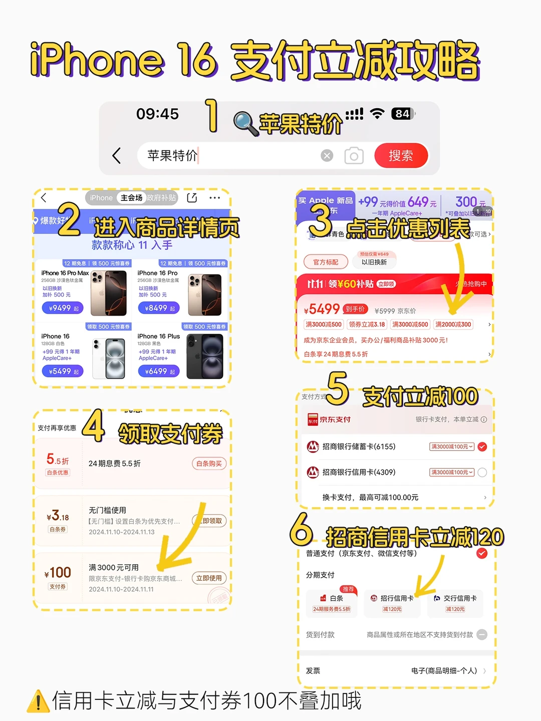⚠️有招商信用卡的宝子支付立减120,不过与上面的100支付券不能叠加哦(看图3)
