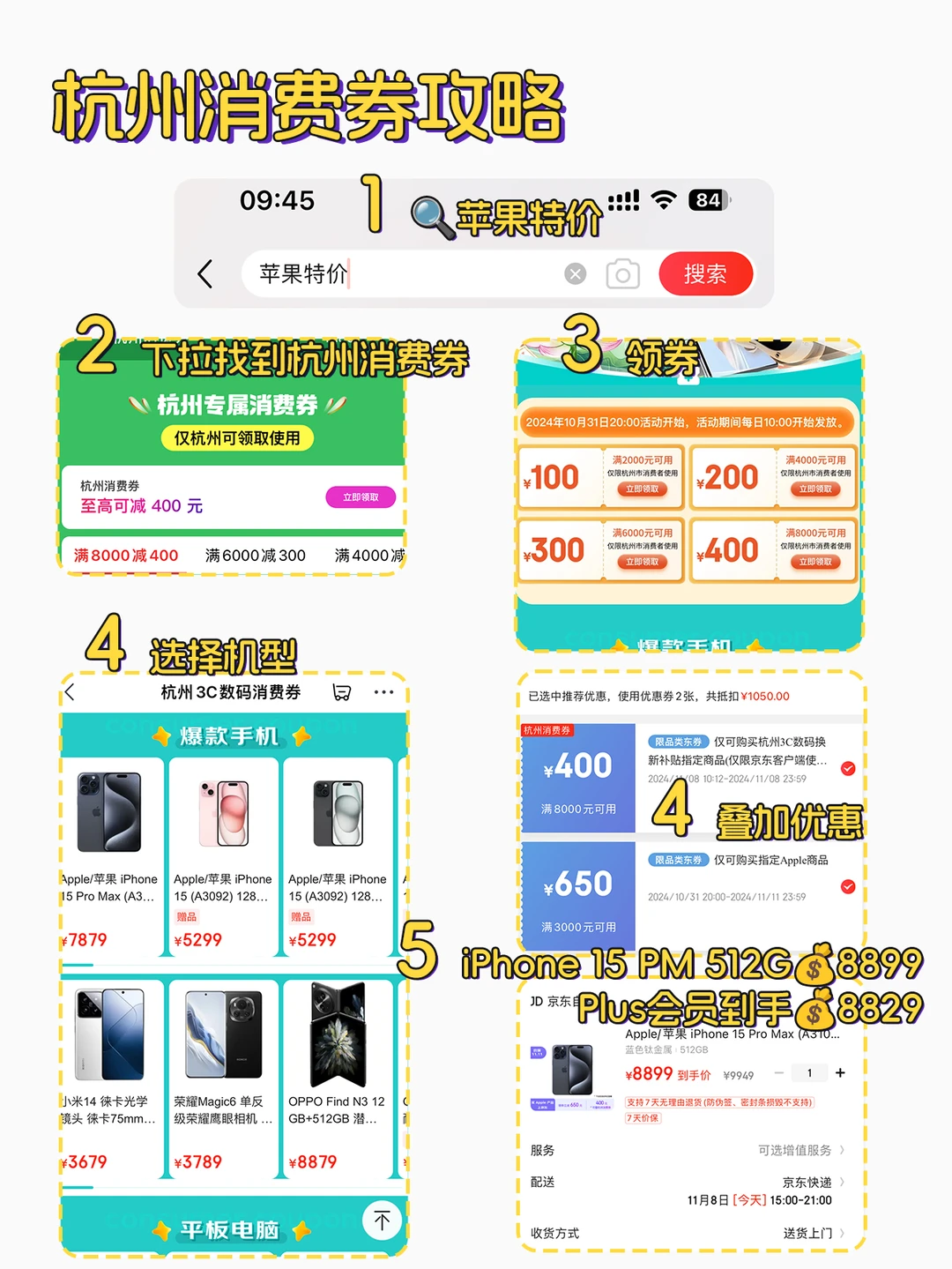 1️⃣指定iPad机型和iPhone15系列还可以领【杭州消费券】至高减400,支持叠加京东立减!⚠️详细的各系列价格攻略都准备好啦,看图6