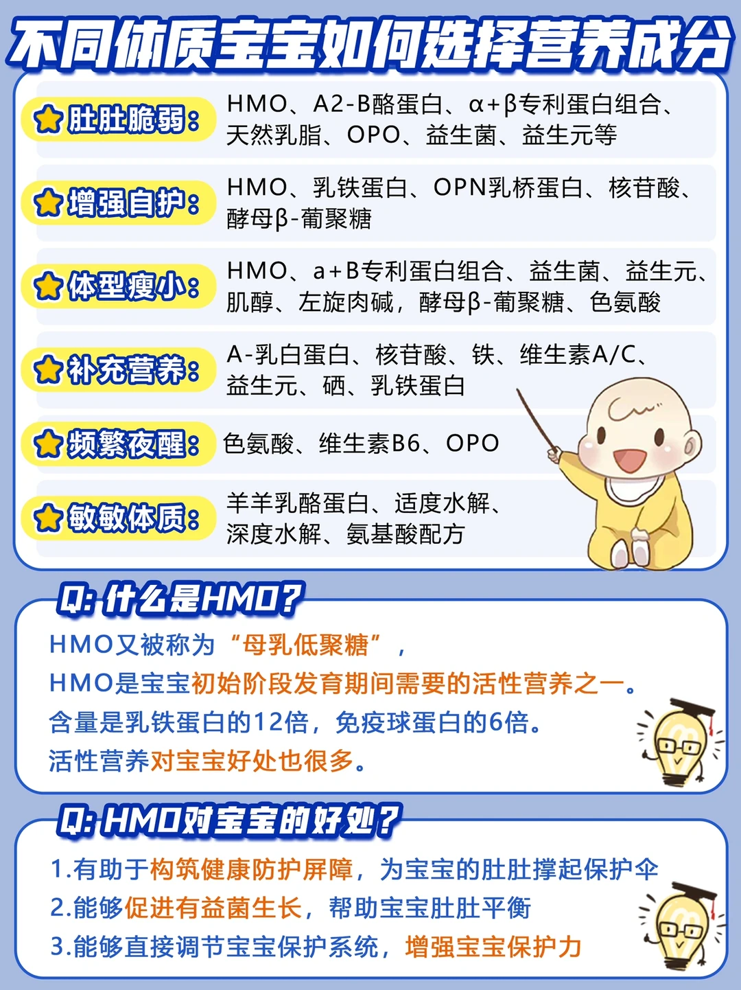 🧐HMO学名叫“母乳低聚糖”, 是属于宝宝初始发育阶段非常重要的活性营养之一,含量在天然营养中是乳铁蛋白的12倍,免疫蛋白的6倍!它更亲和人体,能激发宝宝自护因子,是宝宝完善保护系统重要的小帮手!核心成分这也是我选了这款奶粉的原因!「启赋未来」里面含有足足6种HMO,种类含量都是全球超群的,有了它,我也就不担心小朋友保护力问题辽!