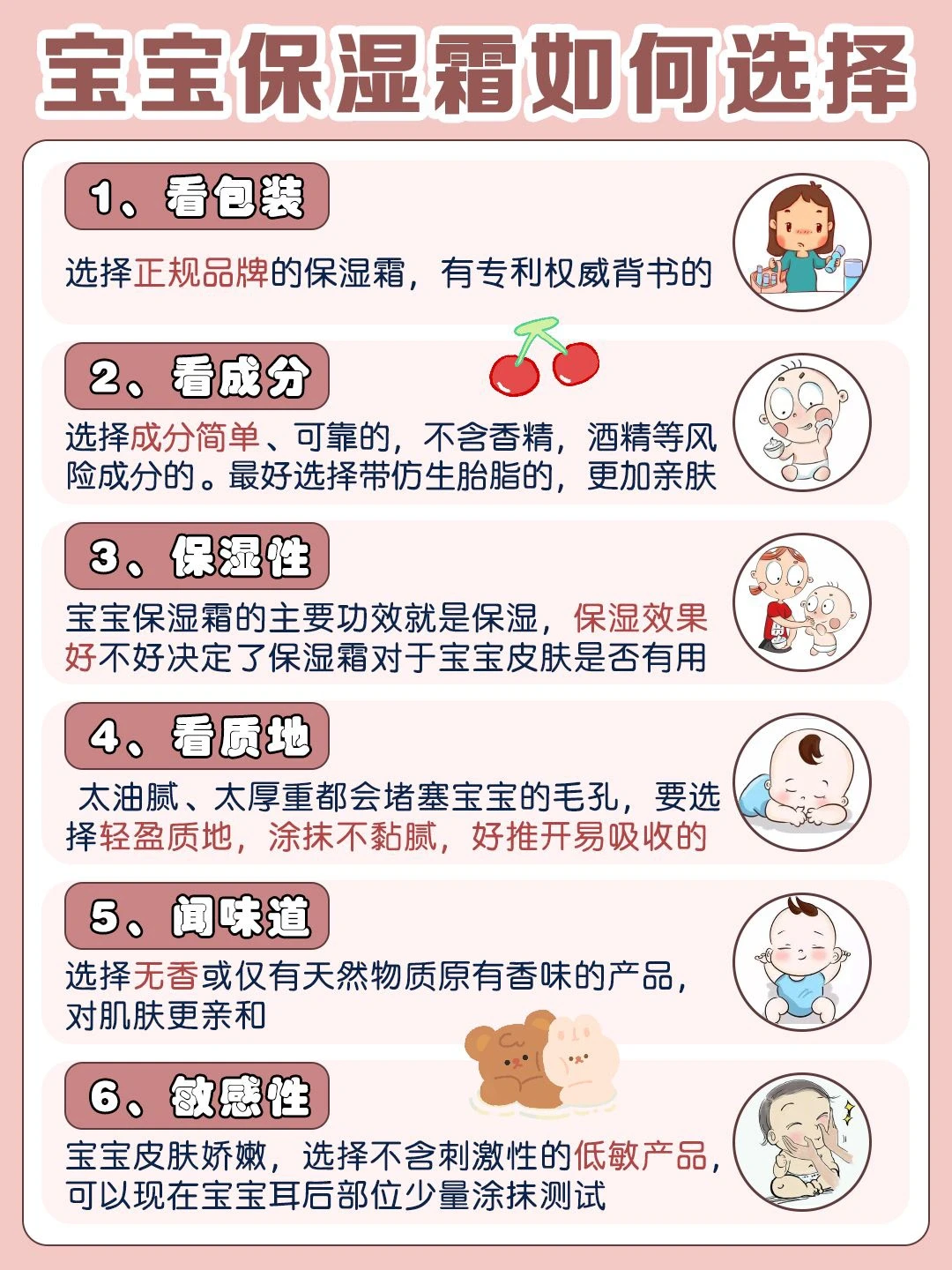 📑整理了一些敏宝皮肤的护理方法,新手妈妈可以保存哦~经过我这么长时间的护理,这里有个关键诀窍就是保湿要做到位!所以给宝宝选一款好用的保湿霜非常关键,我一般都看这几个方面👇
