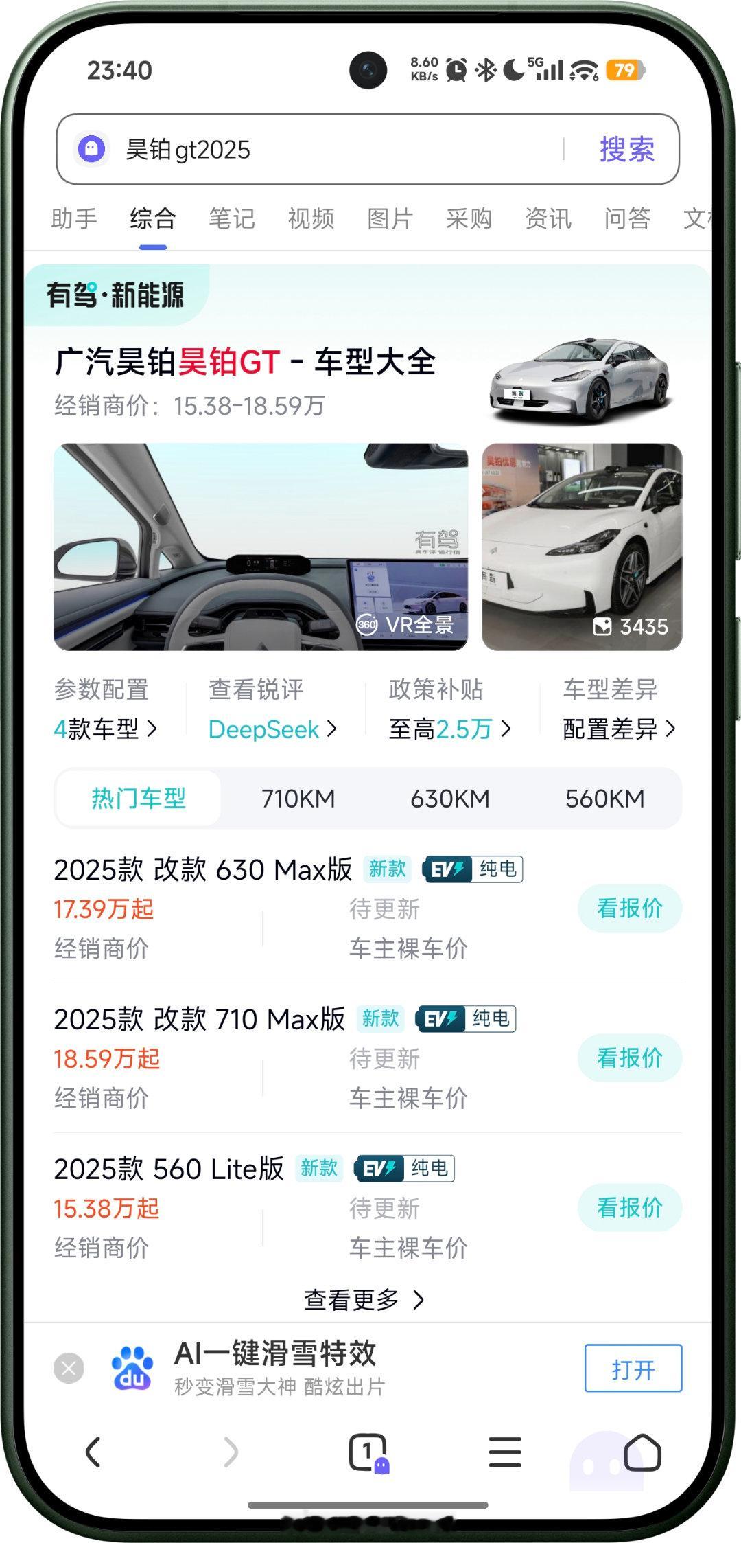 还是aion y看到的蛮多的, 很少看见了,帅还是帅的。销量是不是比较低?现在买SUV,中大型、大型、全尺寸...的人多吧。送2000度电卡,的确地图上看见过几个昊铂超充桩,没去体验过,但是❗电卡和置换补贴是限时二选一,感觉不是很狠。辅助驾驶标注的是广汽的GSD,不知道体验咋样,15.38~18.59价位的竞争力可能不太够吧,销量最近如何?昊铂ht是不是更能打一点。