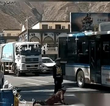 马路就这么宽。 一边,是匍匐在地的身体,丈量着去往圣地的距离。 另一边,是笔直挺立的身影,守护着脚下的国家公路。 说真的,这一幕,比什么大片都震撼。 那个磕长头的人,心里装着的是神山,是来世,是一个遥远又确定的远方。一身风尘,三步一叩,他活在自己的精神世界里。 那个交警呢?他心里装的是职责,是安全,是此时此刻这条路上的秩序。警服笔挺,目光如炬,他必须对每一个生命负责。 按规矩,这妥妥的占道,影响交通。 他完全可以上去“执法”,让他们靠边点,快一点。 但他没有。 他就那么静静地,像一个沉默的界碑,把信仰的世界和世俗的车流,稳稳地隔开。 那一刻,我突然觉得,他们都在完成一场自己的“朝圣”。 一个,是为了抵达灵魂的终点。 一个,是为了守好职业的起点。 你的信仰我不一定懂,但我用我的职责,捍卫你信仰的权利。 这,可能就是我们这片土地上,最动人,也最强大的“无声的默契”。