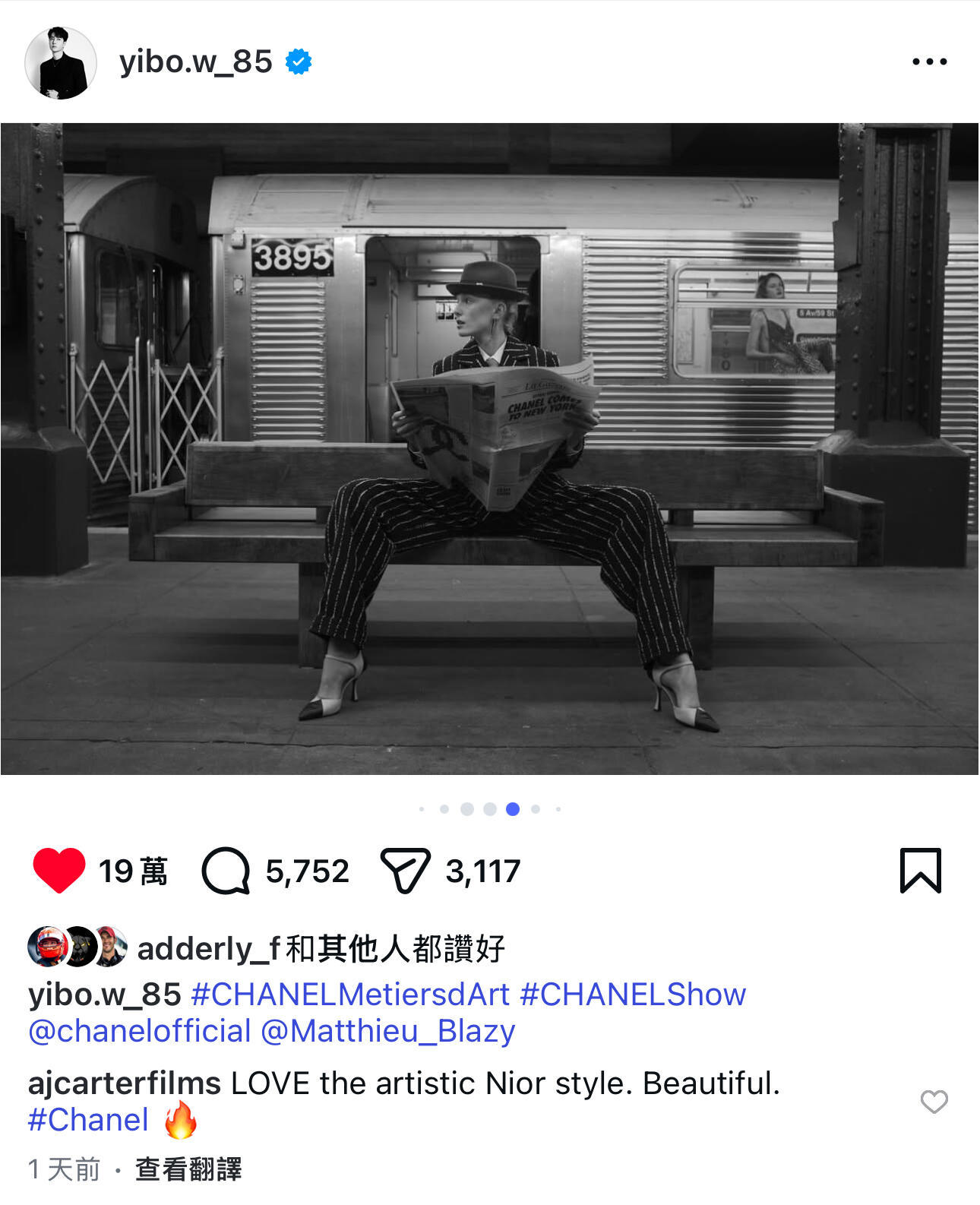 王一博 香奈儿超模的经纪公司官号(美国模特公司)引用了王一博在ins上po的摄影作品!明明大秀上很多专业摄影师在场,却引用了王一博的摄影作品,吗呀摄影领域的天赋新星博哥来了!
