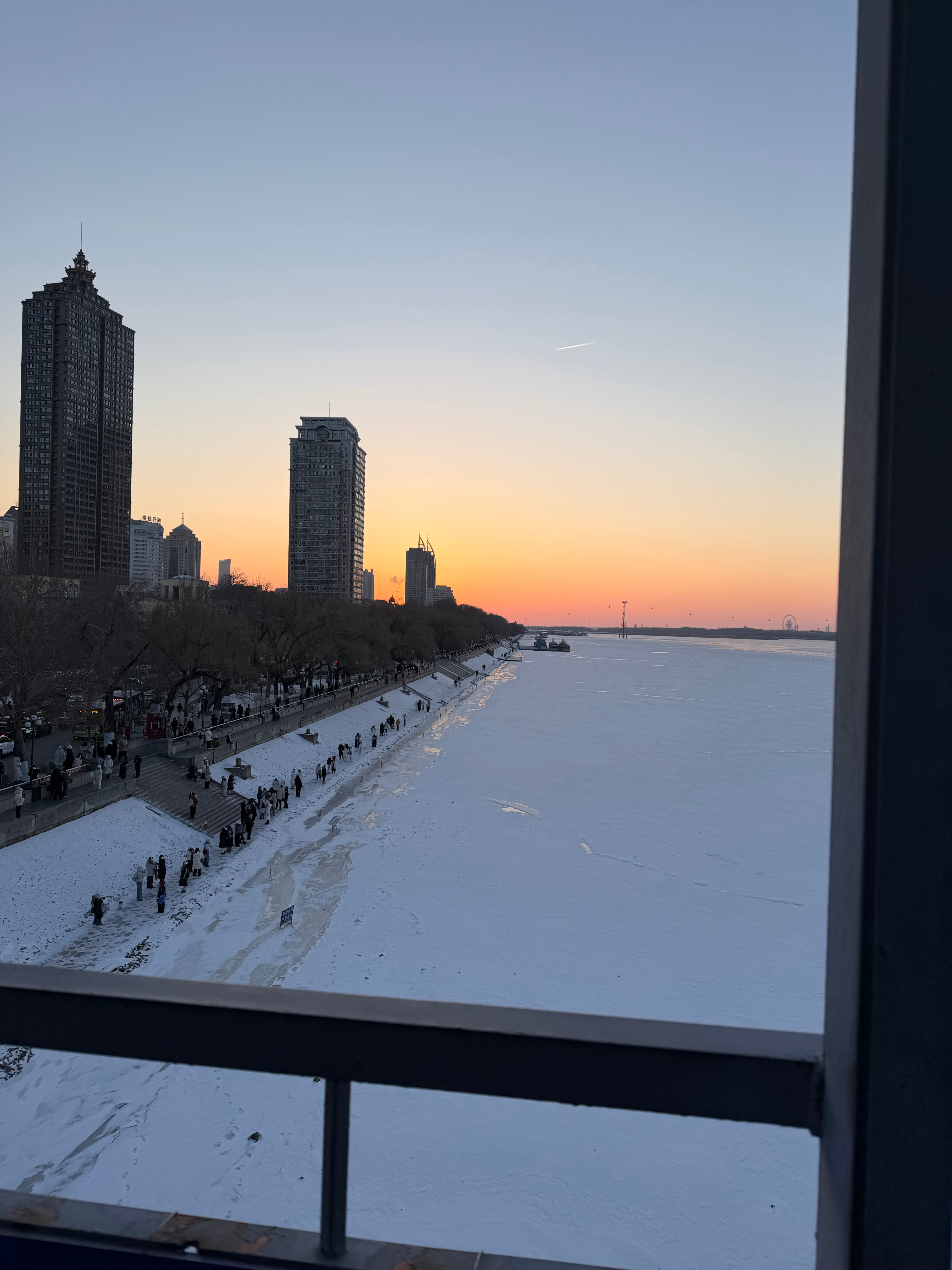 哈尔滨的第三场雪来了,美丽的松花江边一片雪白!