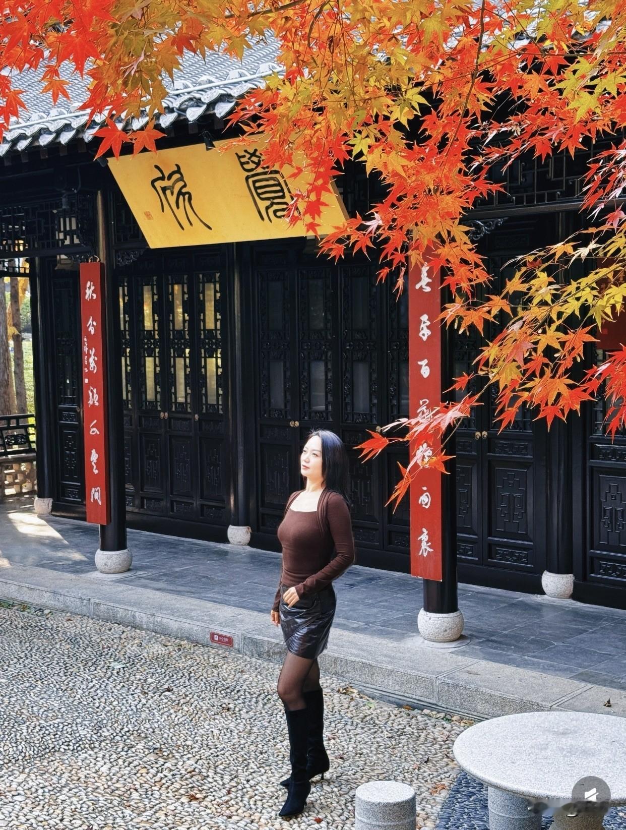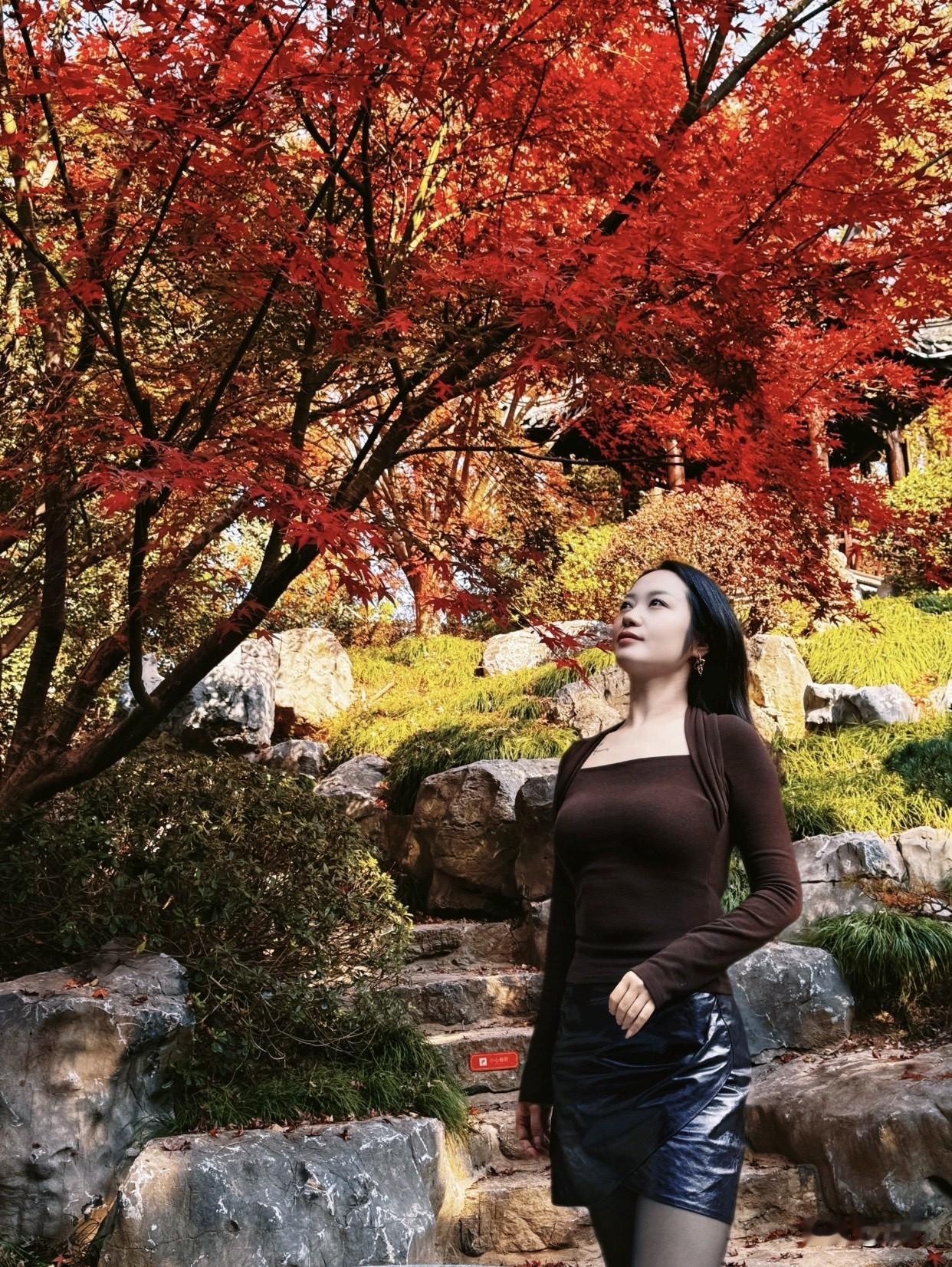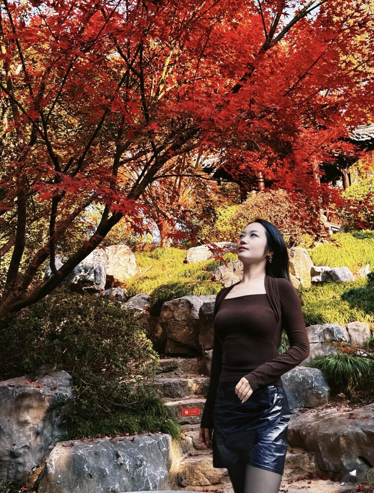 什么样的女人最令人着迷秋日红叶下的优雅女子,漫步在石阶间,感受大自然的美丽。