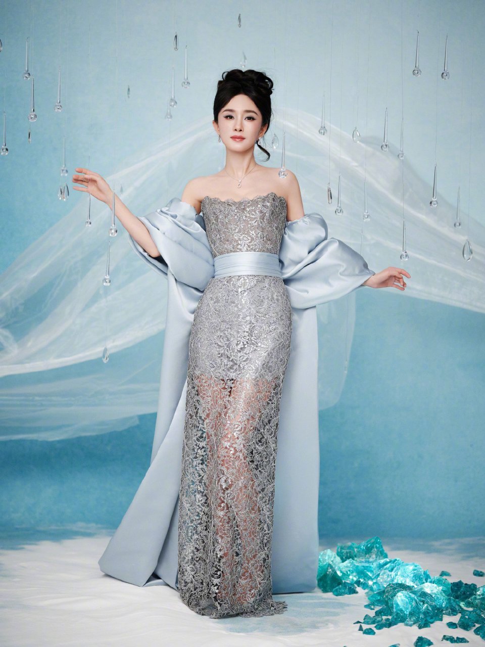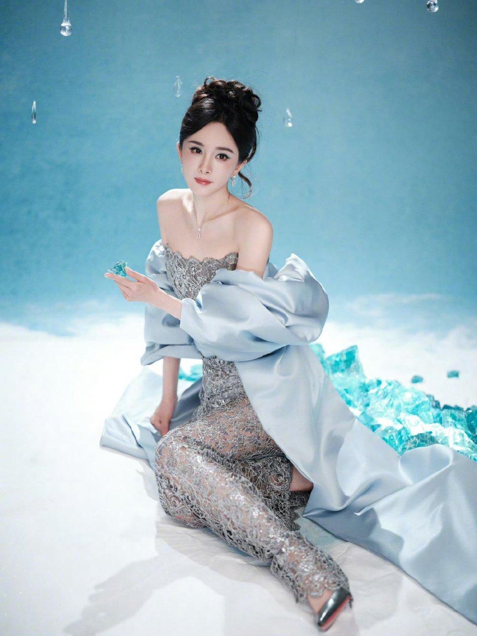 杨幂这是cos冰雪女王啊杨幂蓝色镂空裙杨幂杨幂
