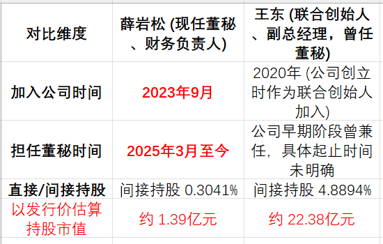 根据公开信息,摩尔线程的现任董秘薛岩松和联合创始人王东,两人在公司中的角色、加入时机和所持股份价值都有很大差异。为了方便你对比,我将核心信息整理成了下面的表格: