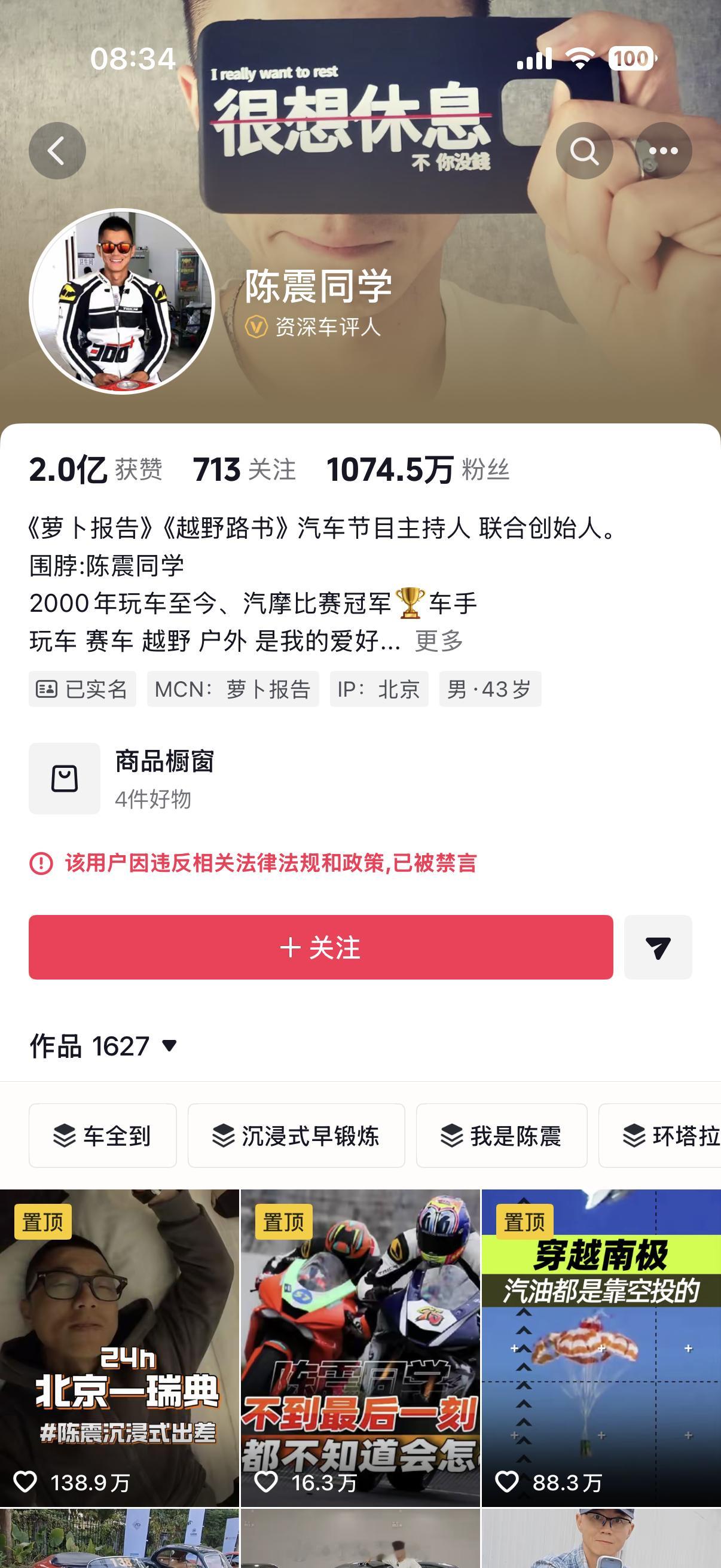 车圈顶流一哥陈震被多平台禁言了,元方,此事你怎么看 ?