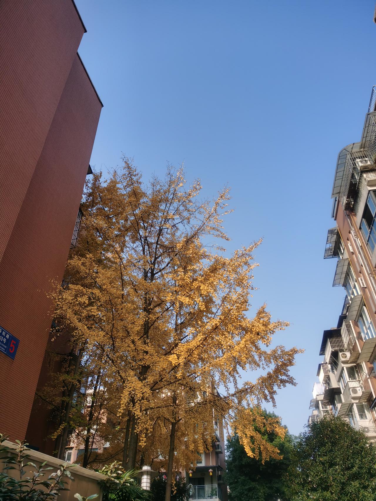 初冬的深秋,阳光明媚,金色斑斓