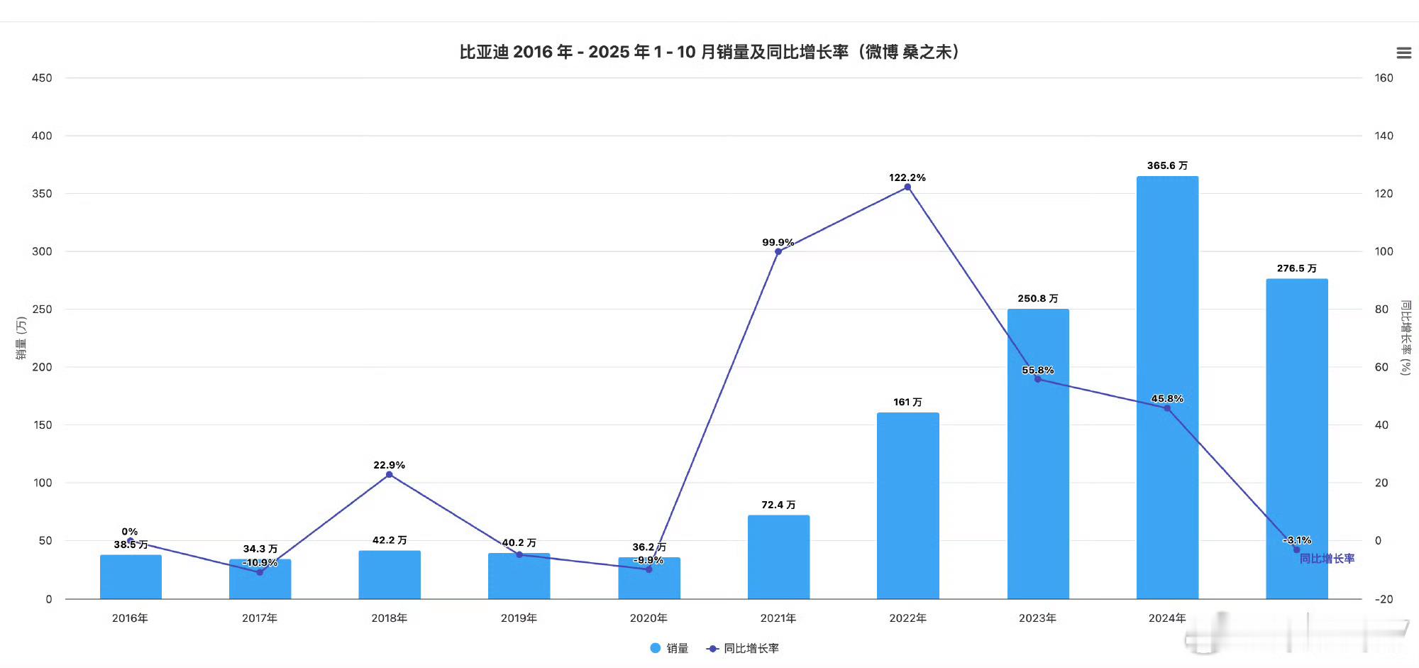 2016年-2025年1-10月比亚迪、大众集团在华销量走势分析比亚迪的崛起节点集中在2021年疫情期间,核心优势源于垂直整合的供应链体系——不仅受疫情冲击较小,更彻底规避了行业普遍的芯片短缺困境;同时通过工厂封闭化运营模式,有效保障了生产连续性,为销量增长筑牢基础。上险数据显示,2024年比亚迪销量达365.6万辆,这一成绩大概率成为近年销量峰值,核心原因在于国内车市“反内卷”趋势下增长承压,当前已逐步转向依赖出口市场拉动销量增长。大众集团在华销量结构仍以燃油车为主导,即便在整体车市向新能源转型的背景下,其燃油车细分市场的市占率仍实现持续提升。但在新能源赛道,大众的竞争力略显不足:插电混动领域缺乏拳头产品,只能依靠燃油车降价策略应对国产品牌的冲击;纯电板块中,ID系列因进入产品生命周期末期,销量持续走低。不过,随着奥迪E5、与众08等车型相继上市,大众正式启动在华新能源市场的第二代产品布局,核心策略为依托本土合作资源,实现产品的本地化开发与生产。值得注意的是,大众在华销售渠道当前已承压至临界点,若无法加速向新能源市场转型,仅靠价格战维系,渠道体系将难以持续生存。桑之未汽车行业观察
