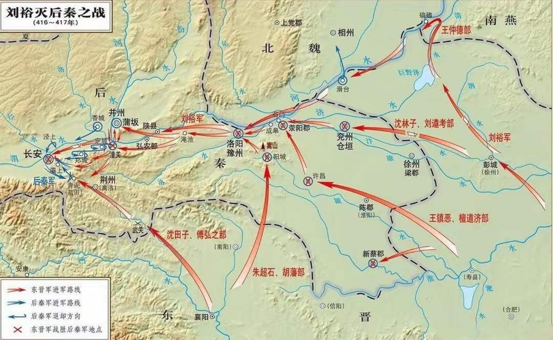 如果说此前历次战争展现的是刘裕天才战术能力,那么北伐后秦之战则充分展现了他极高的