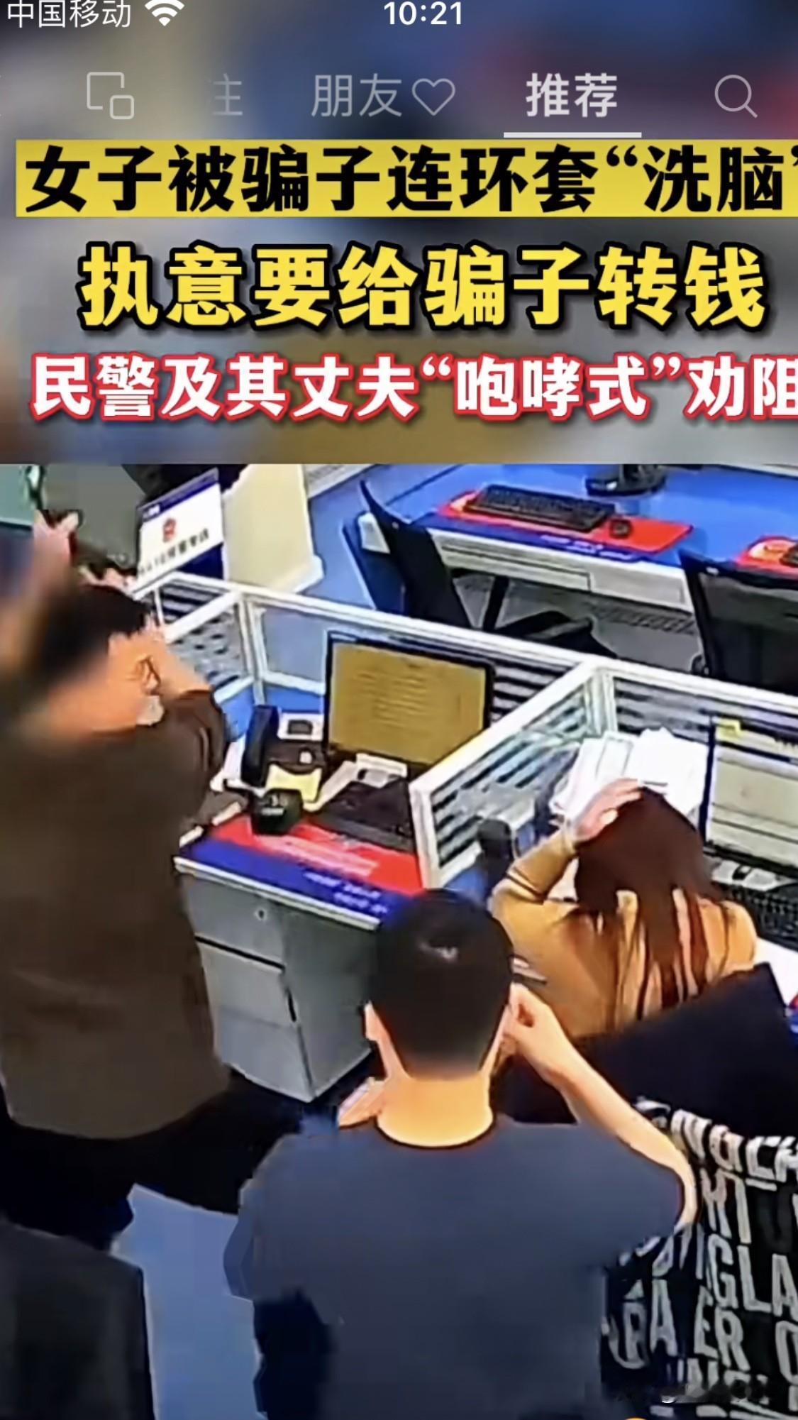败家娘们,揍都揍不醒你,除了老公不信,其它的人都信,十头牛都拉不回来的那种,而且是特别倔犟的那种。老公揍她都打不醒,同为女人,第一次赞同把,把她打清醒,可恨至极。 “女子被骗连环套‘洗脑’,执意要给骗子转钱,民警及其丈夫‘咆哮式’劝阻《怀柔e警务》。 看这样让男人管钱也没用了,女的可以借贷,最好的方式是能把脑子转过来就继续在一起,转不过及时分。 其实,大多数上当的人就是贪婪,以为天上会掉馅饼,缺乏法律知识鉴别能力差的人。 我想,与其这样吧,不如按照智商重新分配财富。