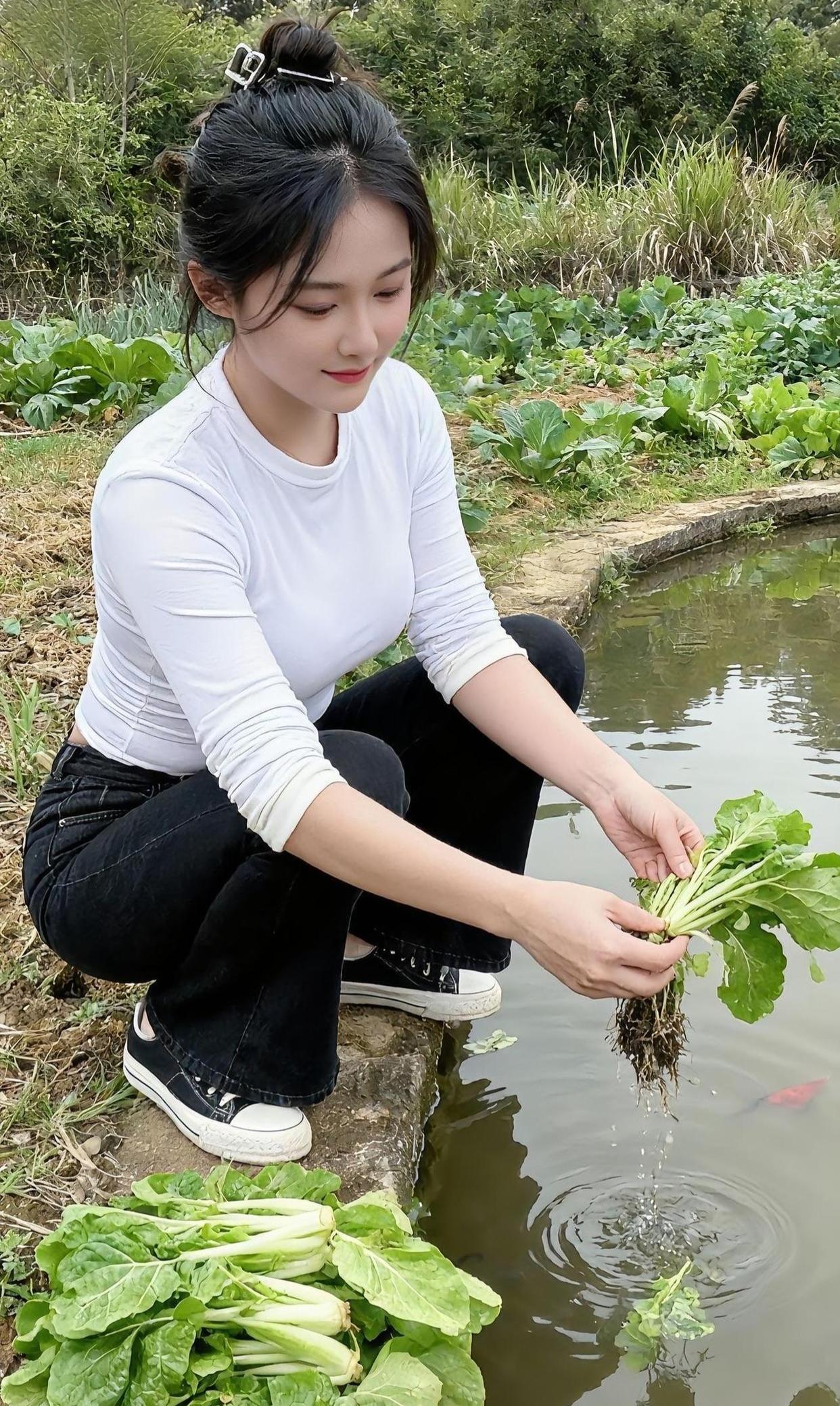 曾黎种菜,很认真。我发现了一个事实,种菜难道有什么神奇的魔力,只让女人着迷吗?