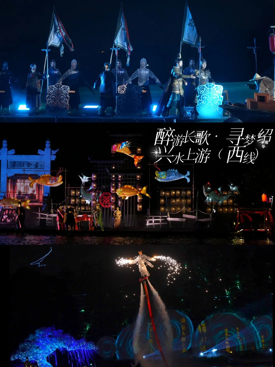 西线-醉游长歌线,全长11.7公里,途经黄酒小镇至浙东运河文化园,融合黄酒、越剧等。白天,远观黄酒小镇、沿岸江南风貌。夜晚,体验“水+影+船+实景”视听盛宴,感受绍兴独特历史文化。