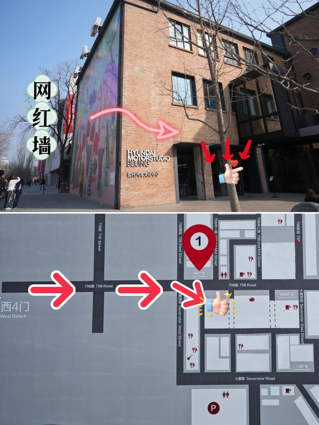 趁着人少,赶紧打卡💯。地理位置就在园区C位,798西4门直行🏃步行3分钟,网红墙拐角