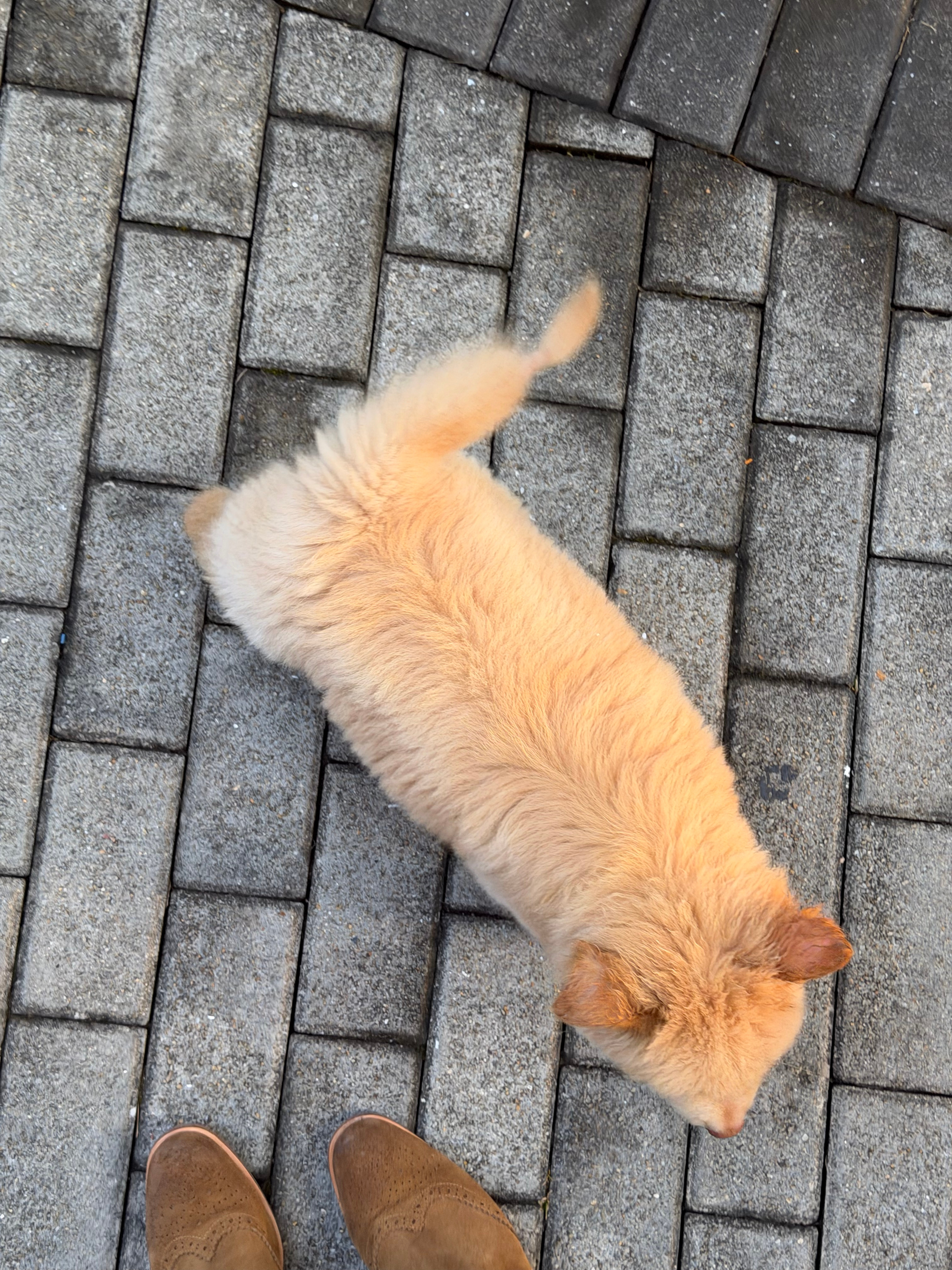 开车路过,撞见一只黑猫刚抓到鸽子,正美滋滋准备“交差”~我按了声喇叭,没想到把