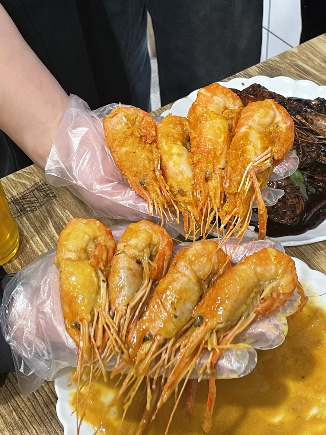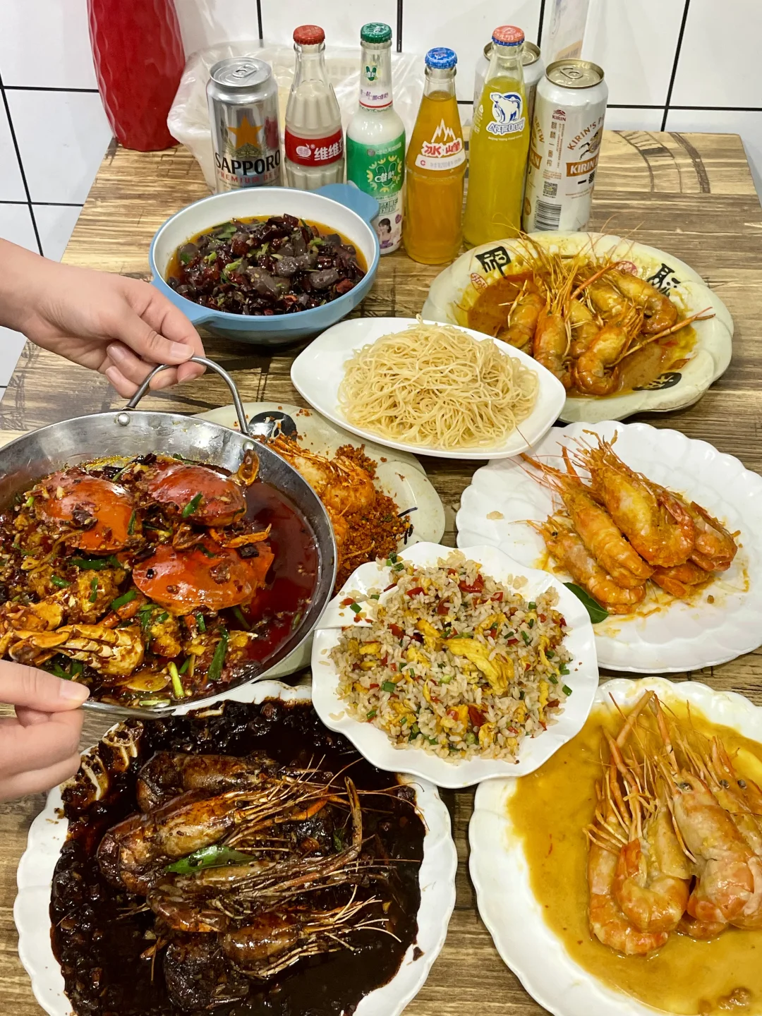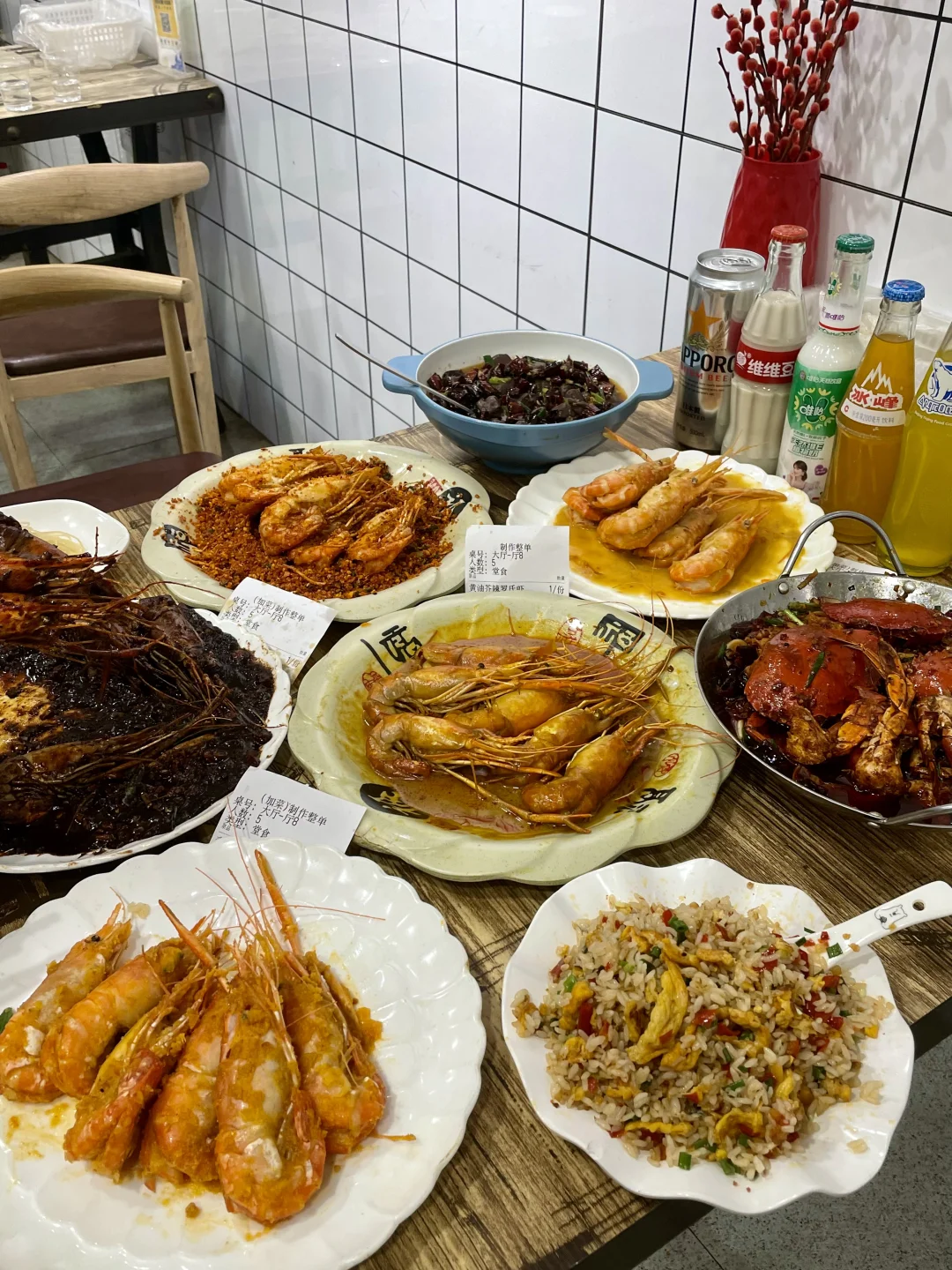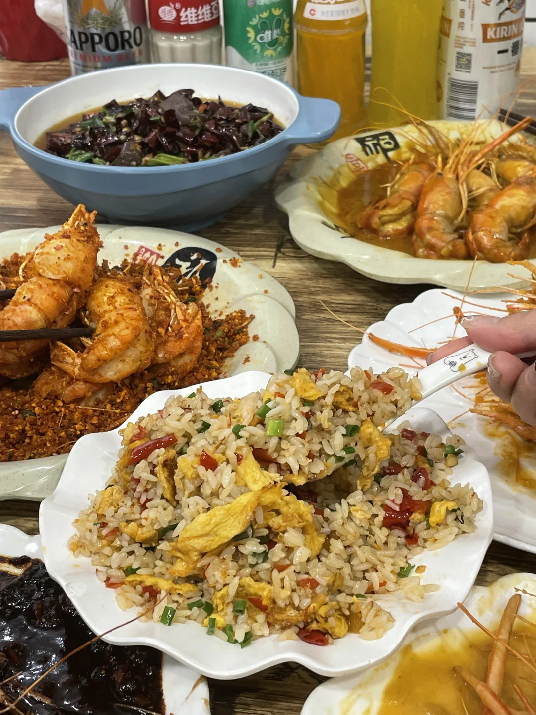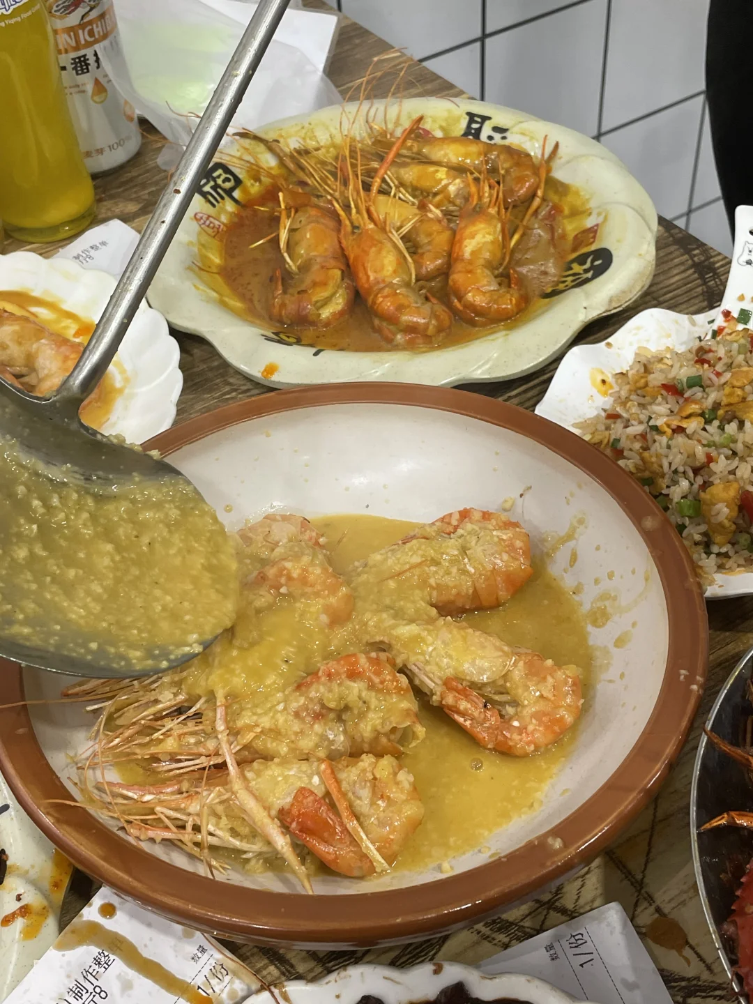 能在他家吃到最多的罗氏虾口味!避风塘/黄油芥辣/黑胡椒/咸蛋黄/泰式咖喱,特地找了朋友一起来吃,把所有味道都点了一遍!巨巨巨推荐避风塘和咸蛋黄!他家的避风塘很有贵阳特色,是加了辣椒,土豆脆做的和平时吃的避风塘不一样,更香更符合贵州口味!! 咸蛋黄味也很绝!每一个大虾都裹满咸蛋黄,满口咸香的幸福谁懂!!!!他家的虾巨大一个,全都是开了背的,现宰现炒 香辣蟹也很推荐!满满的蟹黄和蟹肉,再加一份拌面🍜吃了三大碗😋
