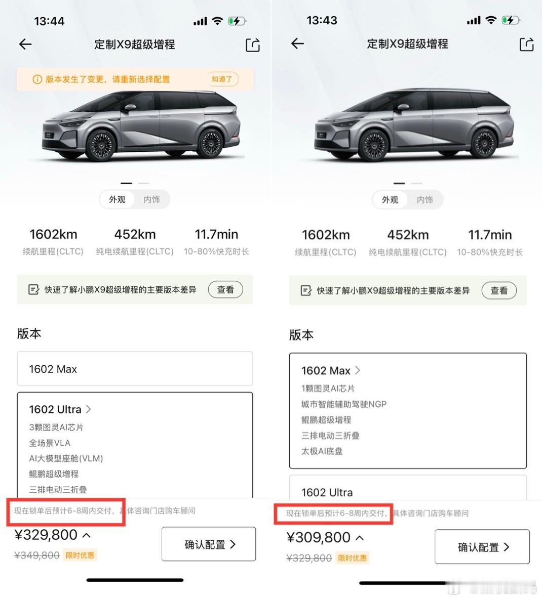 小鹏X9真的卖爆了,有网友询问第三方平台X9前期意向金订单转卖是否可信,小鹏高管回应非官方行为不可信,工厂正在加班加点赶生产保交付。目前,小鹏汽车APP显示,Ultra版交付周期已全面延长至6-8周。订单远超预期,小鹏汽车推出「跨年购置税补贴」政策:2025年12月31日(含)前锁单的用户,可享受购置税退坡补贴,最高1.5万元!此前小鹏发出“紧急加产”邮件,目标年底前新增5000份备料,全力冲刺交付,让用户尽早提车!小鹏高管称X9增程有补贴兜底呼吁抵制黄牛