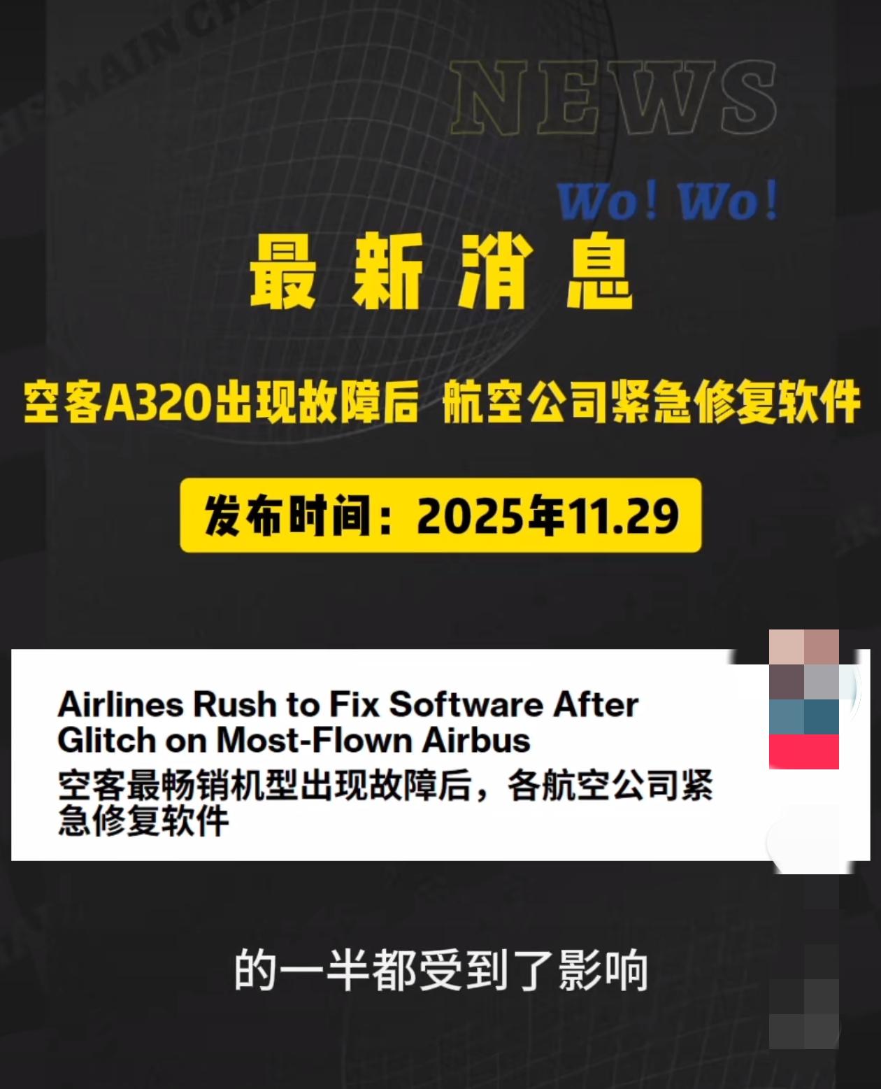 近日,空客A320系列客机迎来紧急停飞通知,这一变动预计将波及全球约6000个航班,近期有出行计划的朋友,不妨提前核实所乘航班的机型。 此次停飞的起因,是飞行控制软件存在漏洞,强烈太阳辐射可能损坏关键数据,10月底捷蓝航空一架A320突发俯冲事故已敲响警钟。好在多数客机仅需数小时软件回退即可修复,但千余架需更换硬件,停飞可能长达数周。全球多家航司已受影响,法航取消5%每日航班,国内24家航司的2000余架A320也在紧急检修。 作为常坐飞机出行的人,我深知航空安全无小事。空客此次主动排查隐患虽带来短期不便,但把安全置于首位的态度值得肯定。大家可通过航司APP或机尾标识确认机型,提前做好行程预案,不必过度焦虑。