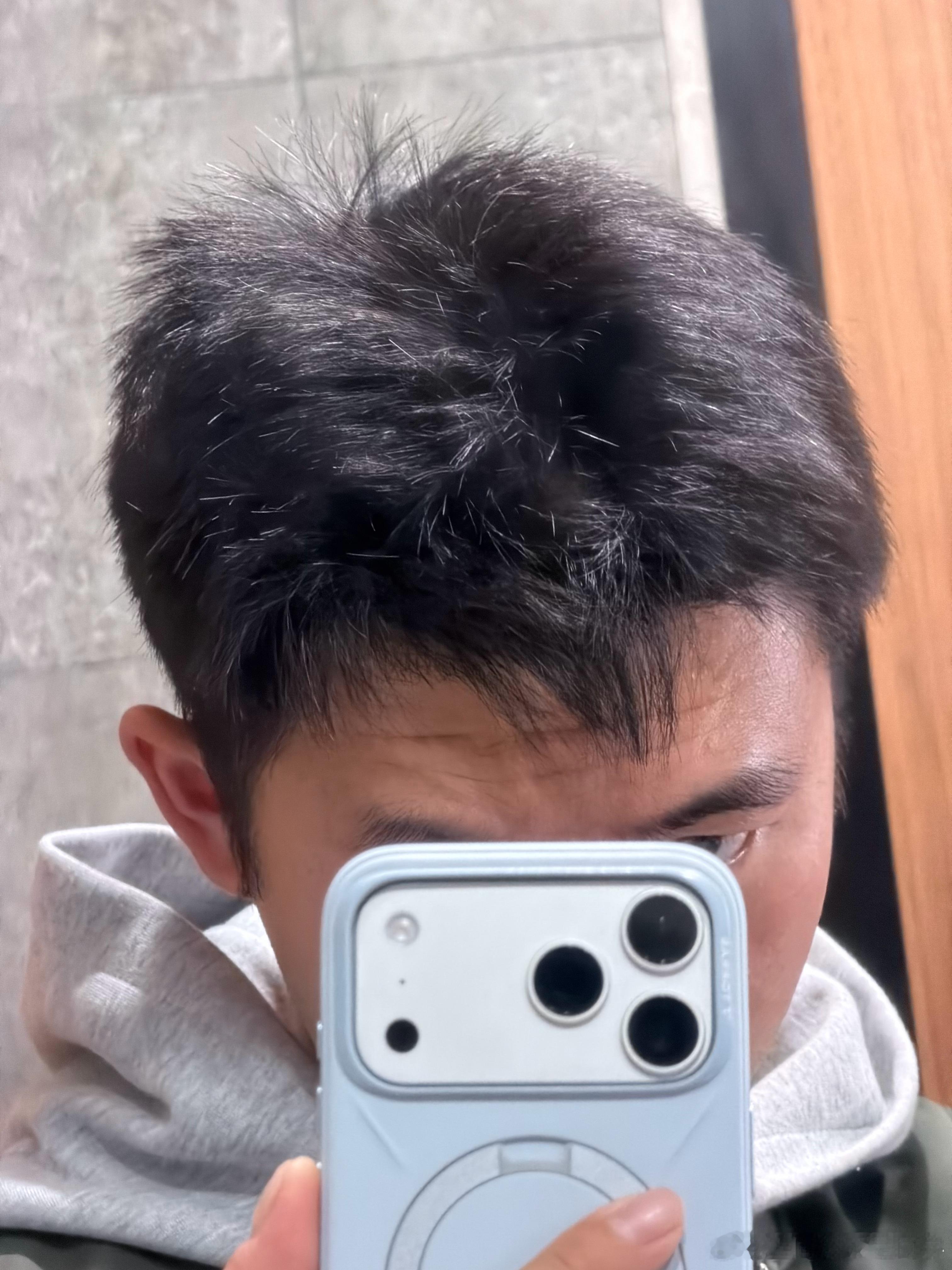 今天戴头盔骑摩托,突然发现头发压的造型比平常发泥抓出来还自然蓬松、略乱,前刺,大