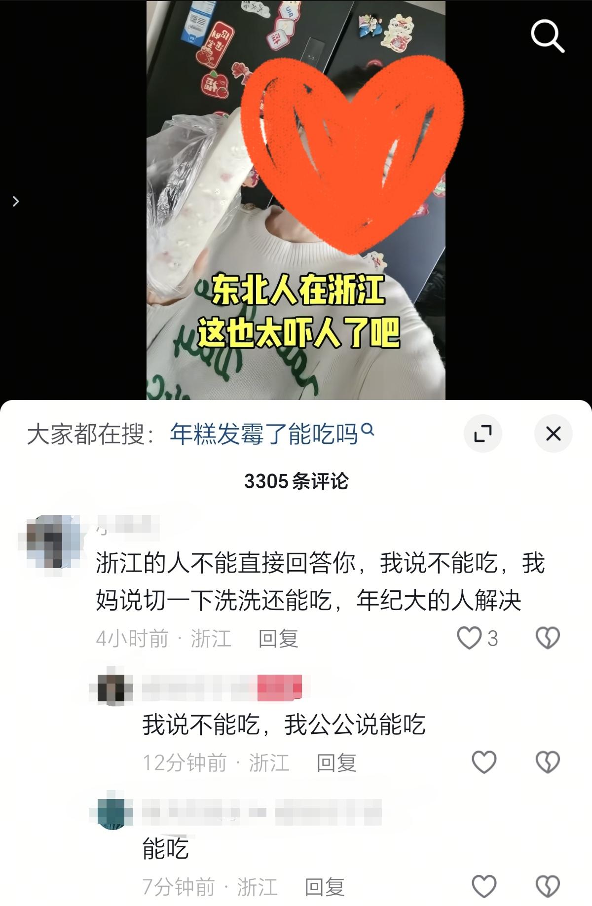 这位博主是浙江媳妇,她问浙江人,这种发霉的年糕,到底能不能吃。因为他公公是浙江人