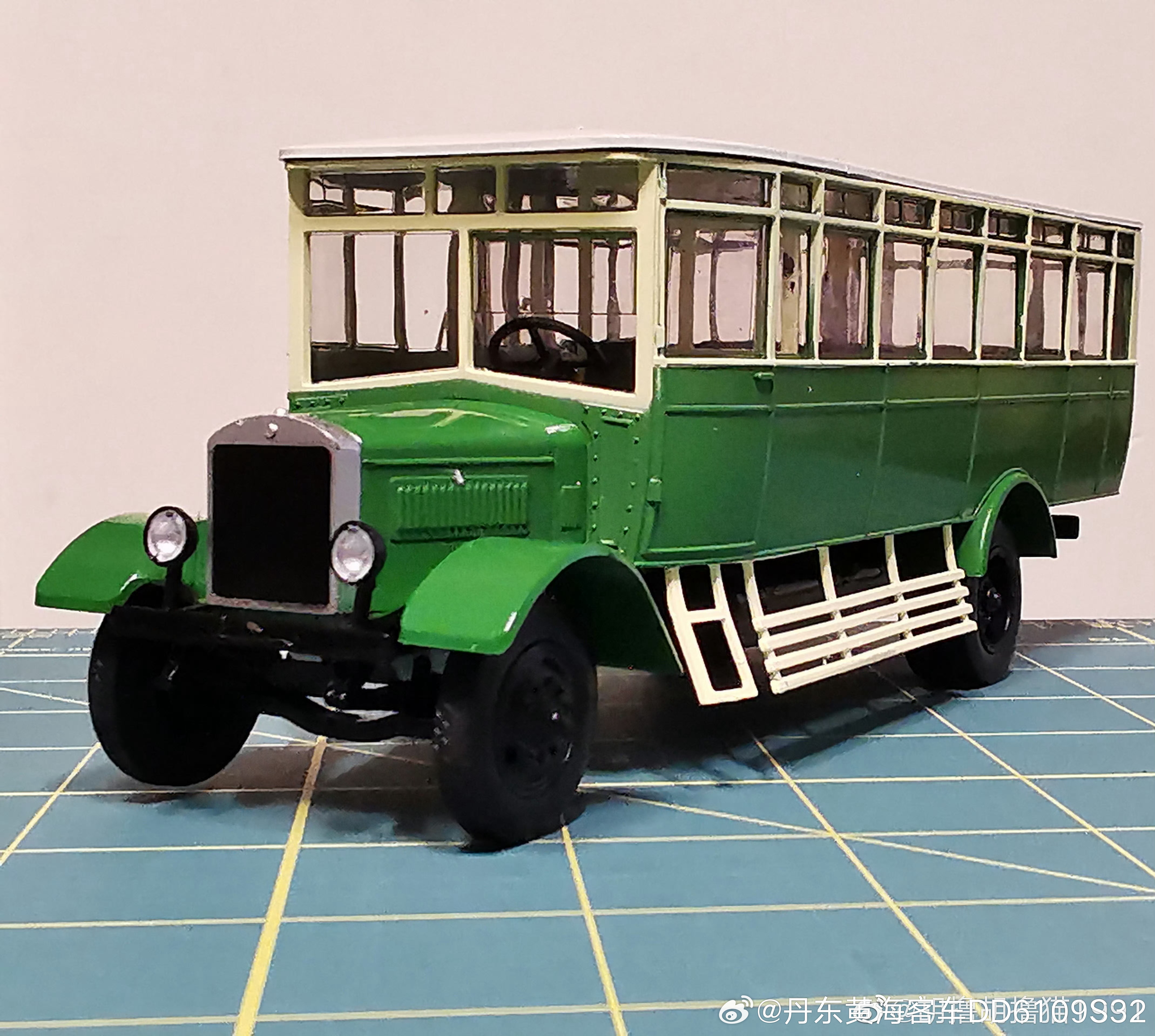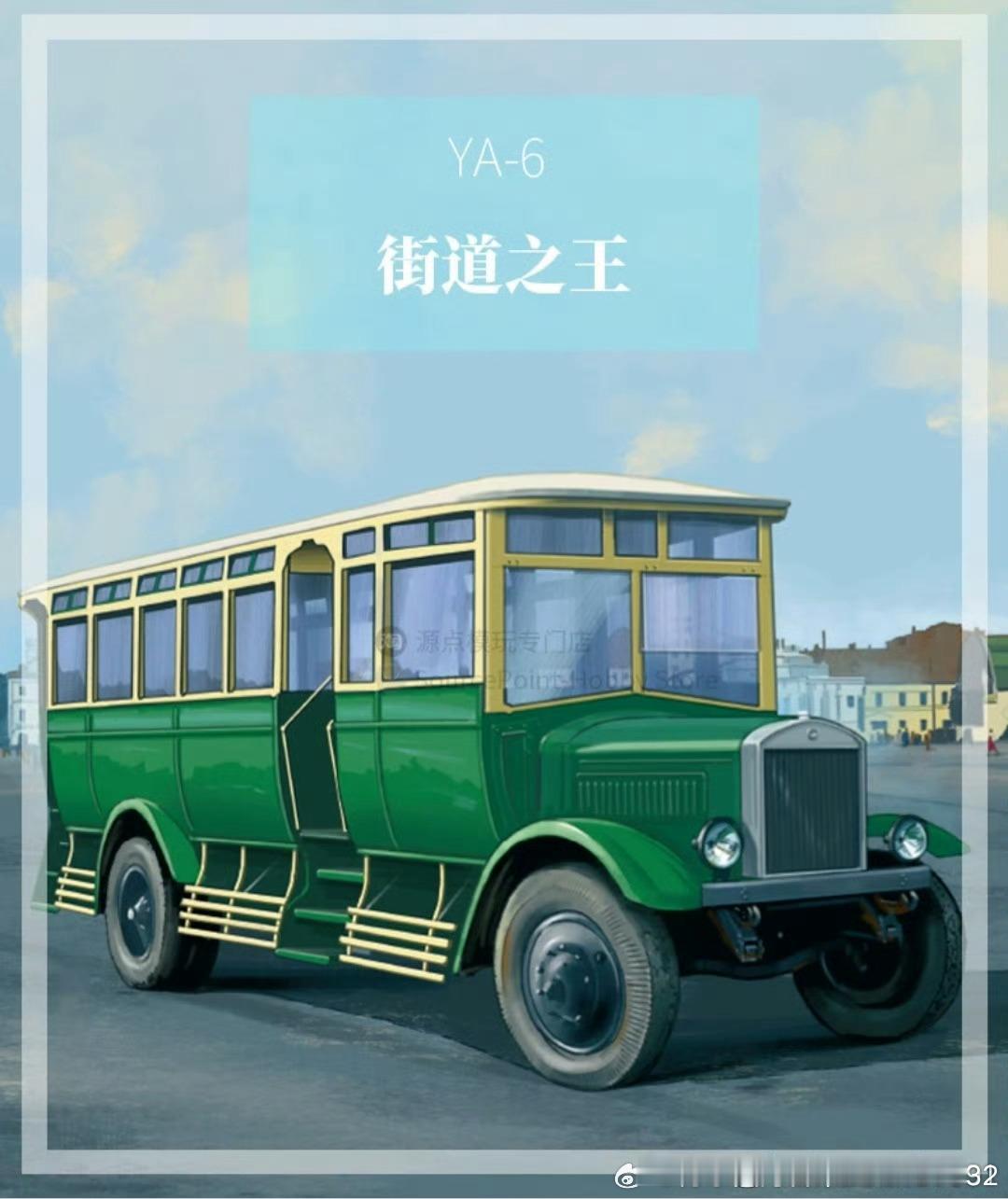 苏联YA6公共汽车模型,比例43。 苏联的雅罗斯拉夫尔汽车制造厂总共生产过两款公共汽车,分别是YA6和YA2。YA6从1929年起连续生产过四年,YA6外观有浓郁的民族风格,轿厢简直就是一座缩小的俄罗斯房子,有楼梯间,门廊外沿甚至能让人隐约能感觉到东正教的影子。 YA6搭载一台93马力的7020毫升汽油机,压缩比仅4.6,油耗45升/百公里,最高速度40KM/h,坐席27位。车辆在雅罗斯拉夫尔工厂进行地摊式生产,内饰及座椅需要家具公司上门服务。 最后一张图为真车,感谢原图作者。