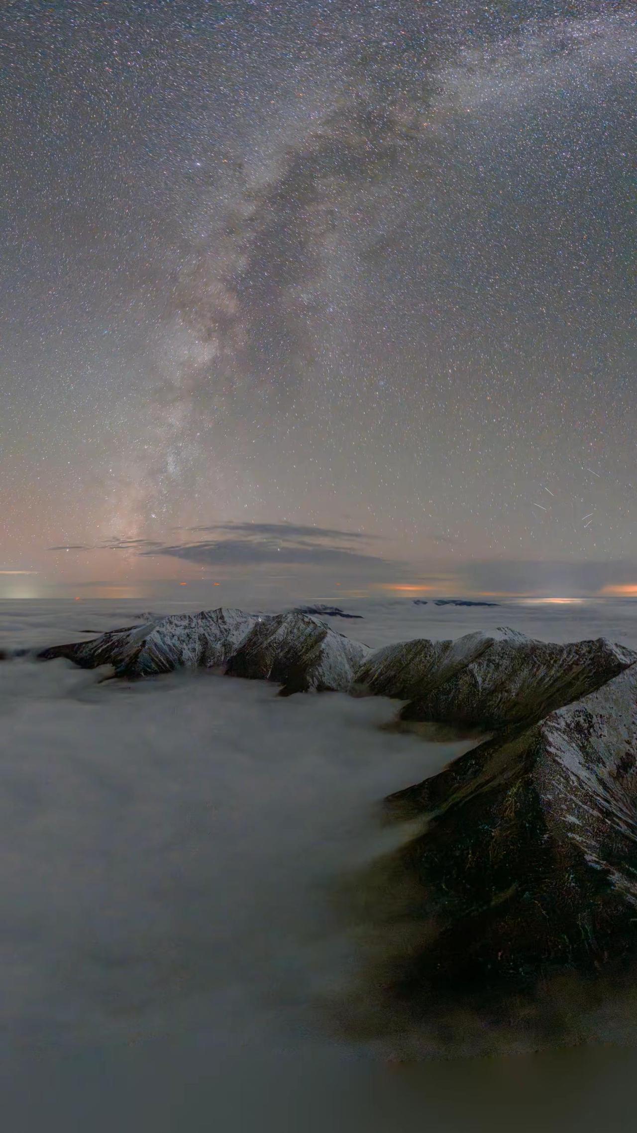 和我的同伴首次冒着零下十多度的严寒,在黑夜中用无人机拍了三个多小时,终于拍到了无人机视觉下的秦岭龙脊星空云海,看到这一幕差点哭了。秦岭龙脊 无人机视觉的星空