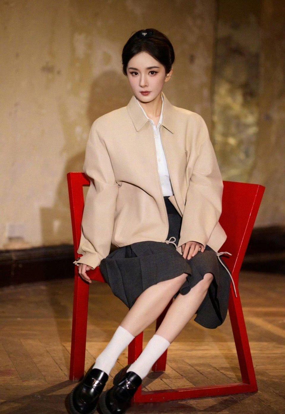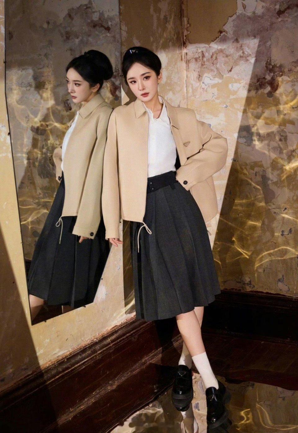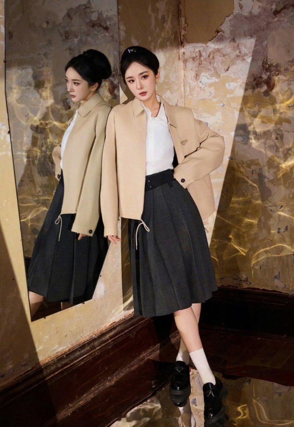 派酱安利 杨幂身穿全套prada 好贵气优雅的学院风女王!这一身太有质感太吸睛了吧