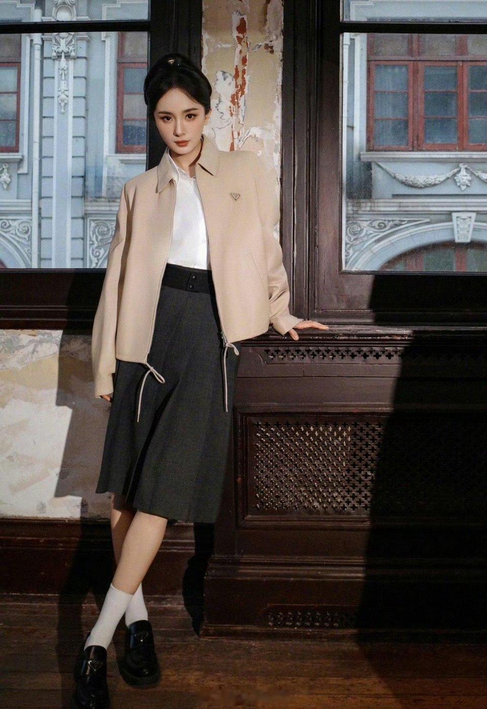 派酱安利 杨幂身穿全套prada 好贵气优雅的学院风女王!这一身太有质感太吸睛了