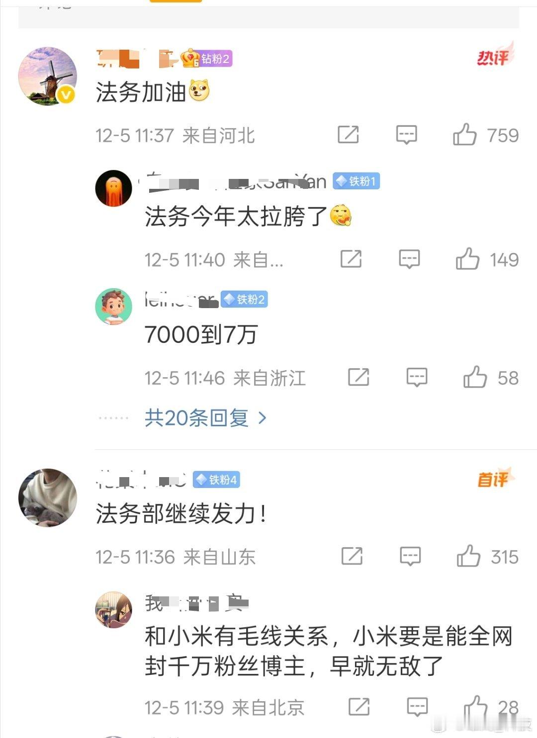 雷军请网友提意见 评论区炸了,也有网友呼叫小米法务要加油啊! 法务部又要忙了。