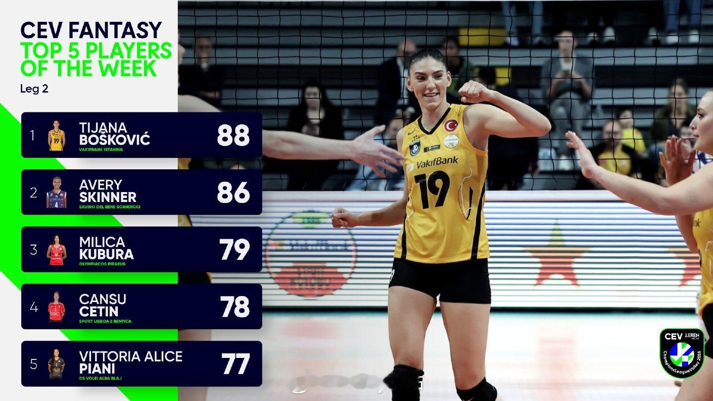 女排欧冠小组赛第二轮最佳阵容(梦幻游戏)排坛动态女排欧冠