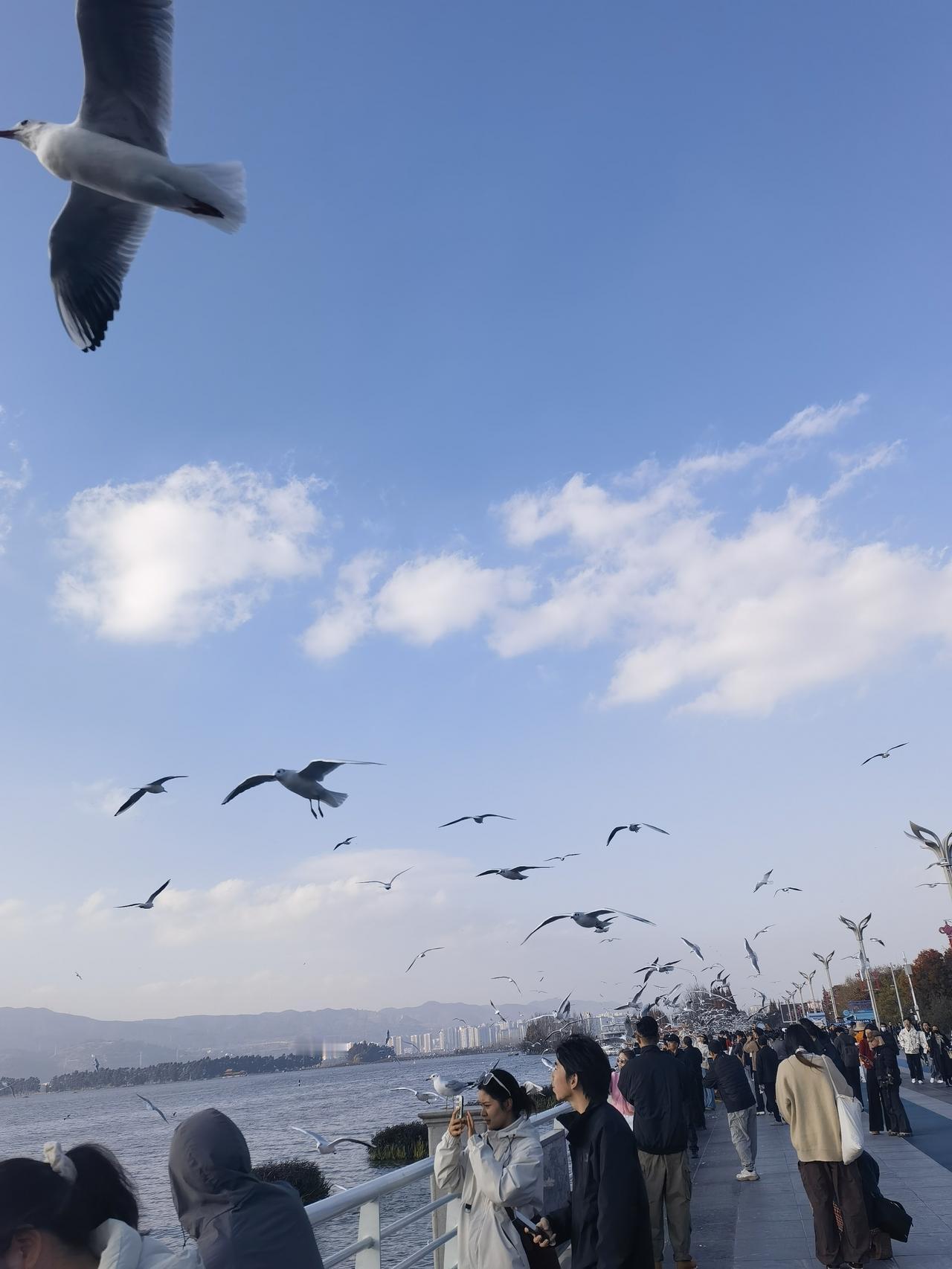 云南旅游系列篇(二) 标题:云南滇池候鸟——海鸥 每年秋季至次年暮春,滇池便成了红嘴鸥的欢乐家园。 这些来自西伯利亚、贝加尔湖的候鸟,跨越数千公里的漫漫征途,赴此温暖之约。 自1985年11月11日,它们首次降临昆明,自此与这座城市结下了深厚情谊。 40年的迁徙与相伴,红嘴鸥已然成为昆明最温情的象征。 滇池作为云南最大的淡水湖和长江上游的生态屏障,为它们提供了越冬栖息之所。人鸥和谐共处的画面,也成了昆明一道独特的风景。