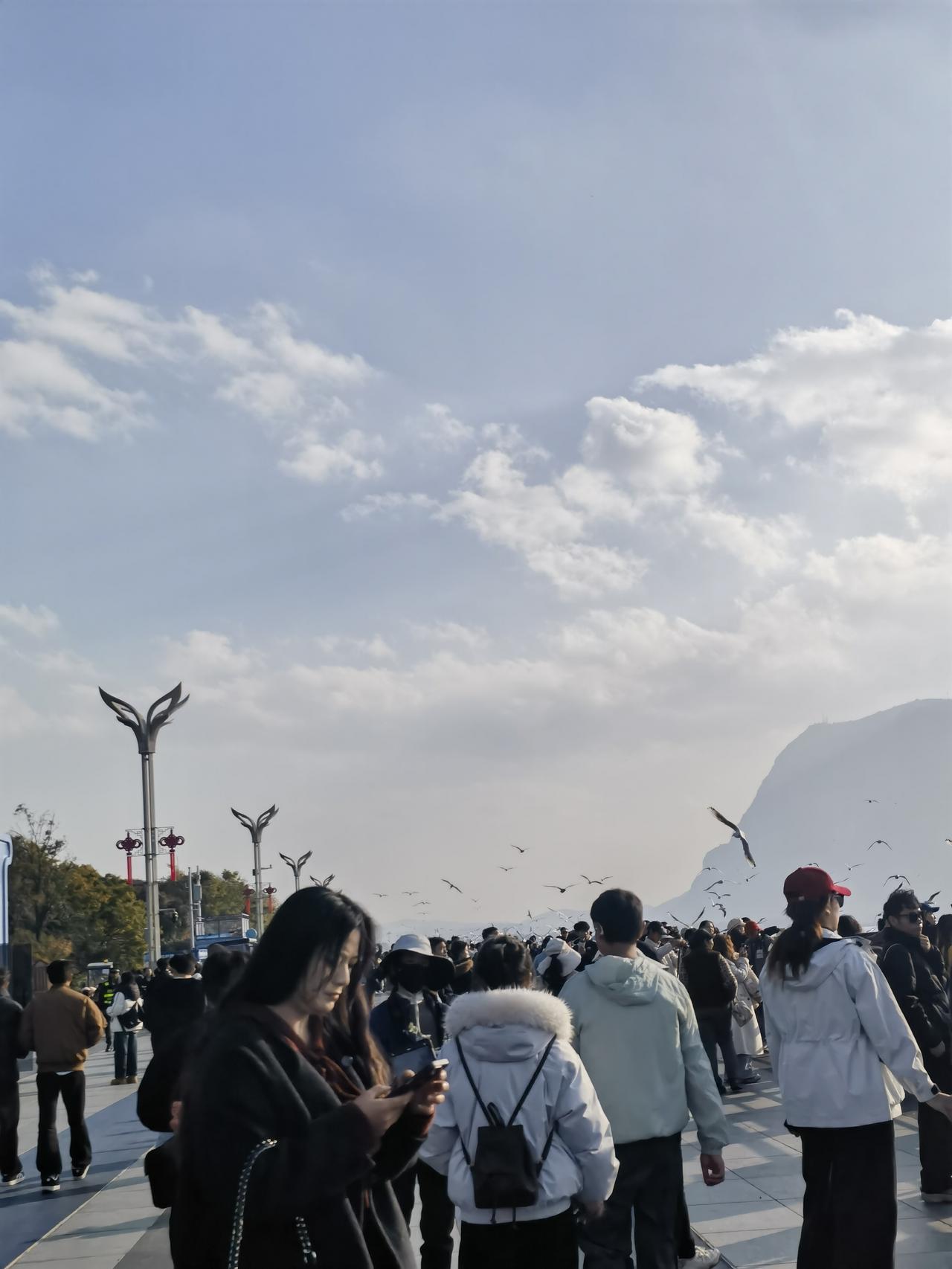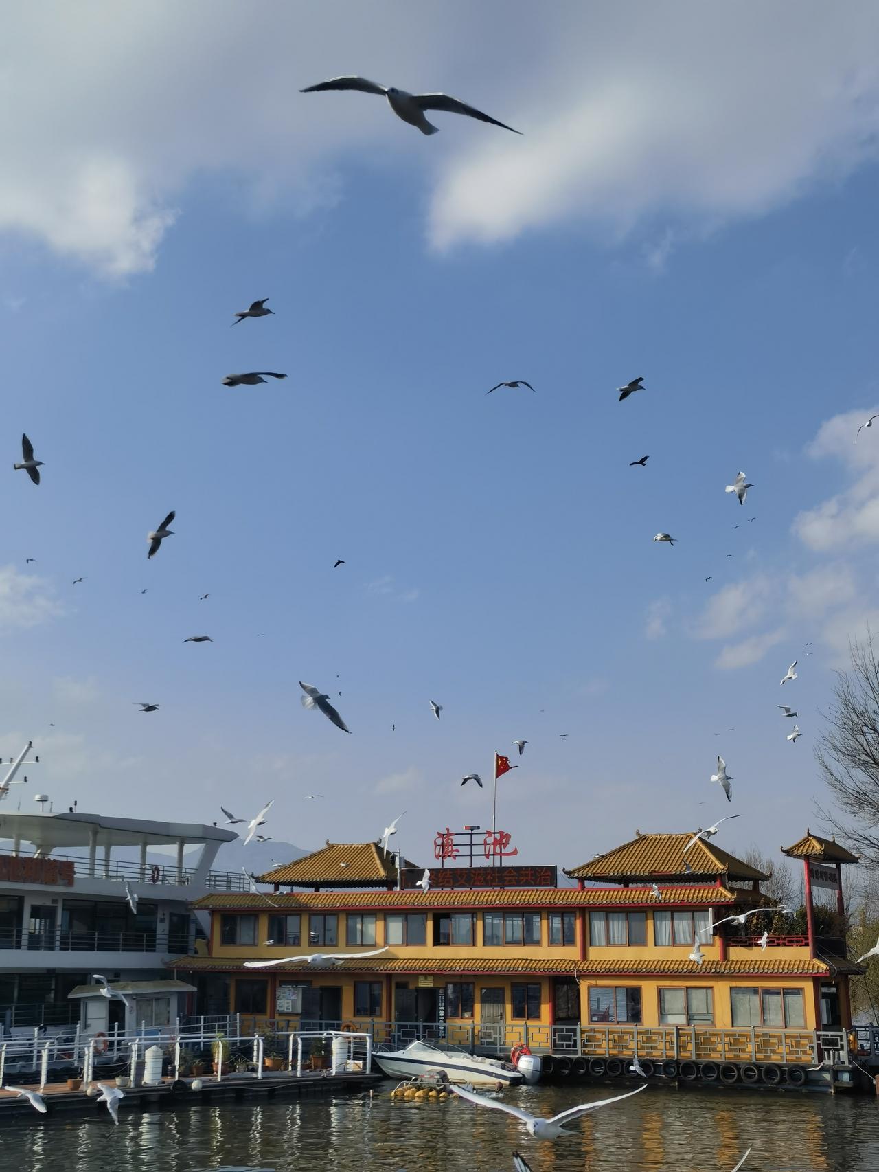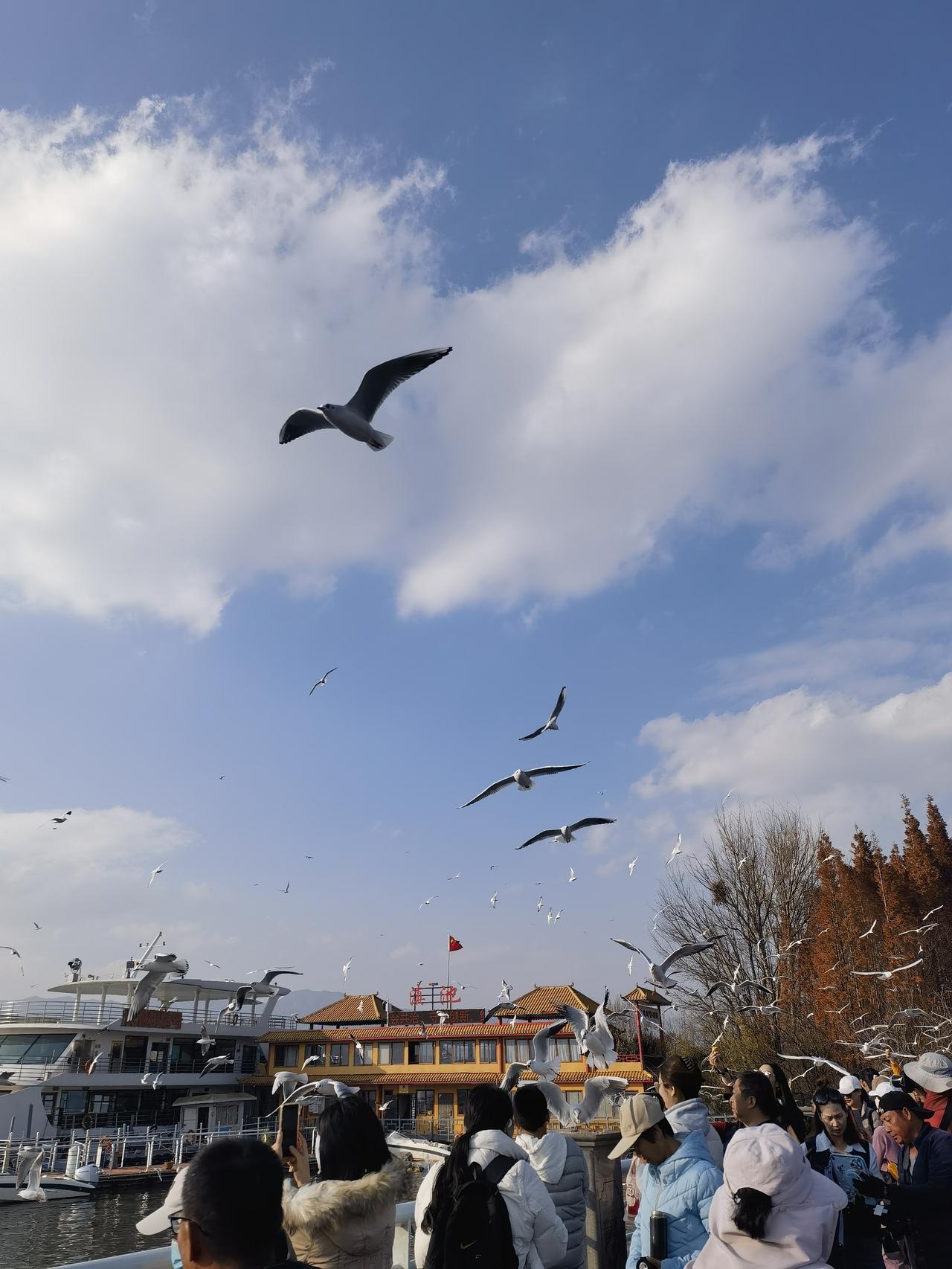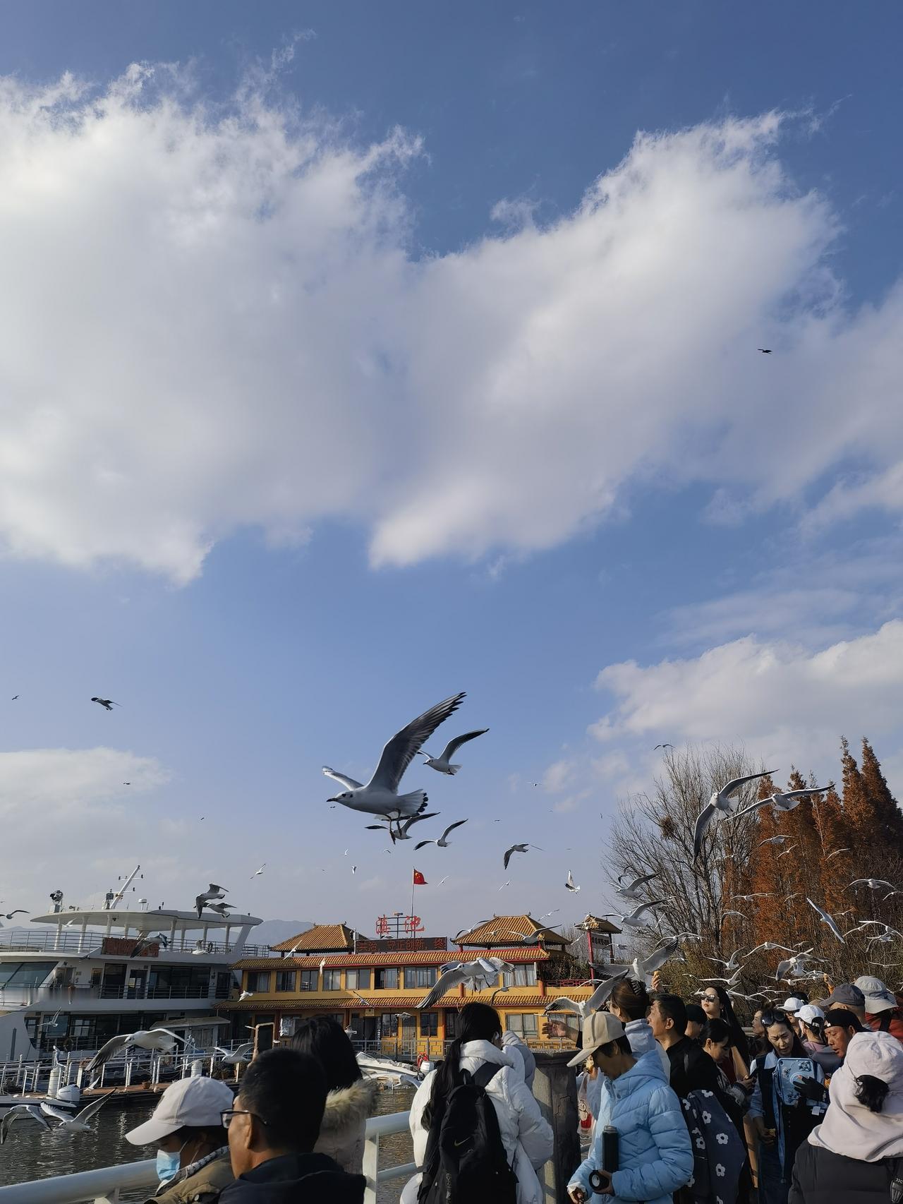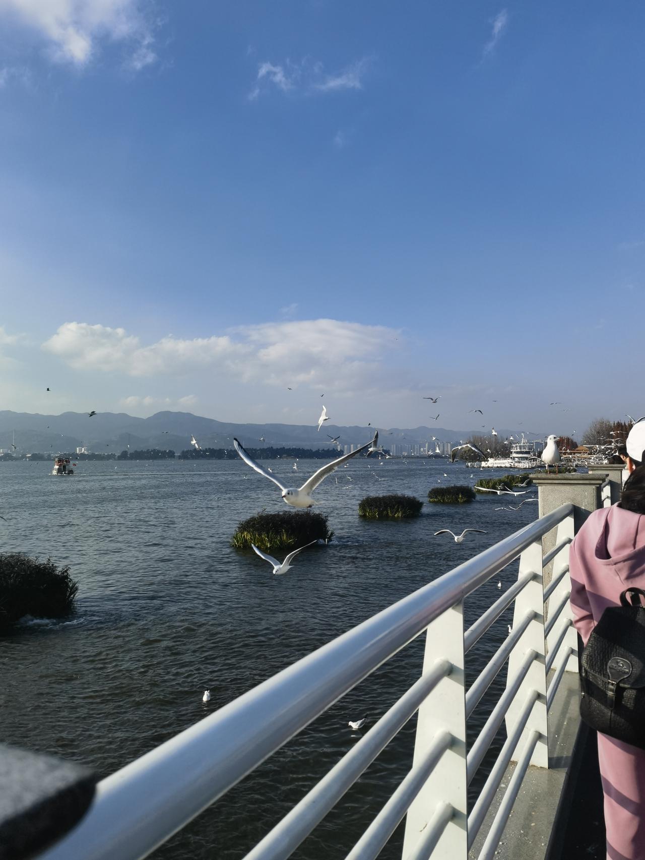标题:人鸥共欢太震撼 每年冬天,云南滇池的海埂大坝就成了人与红嘴鸥的欢乐场。 2025年12月3日那天,我也去凑了热闹。 站在大坝上,放眼望去,数万只红嘴鸥在天空中飞舞,场面特别壮观。 这些小家伙从北方不远万里飞来越冬,给滇池带来了生机。 大坝上,市民和游客们都兴奋极了,纷纷拿出面包喂它们。红嘴鸥们一点儿也不怕人,敏捷地从人们手中叼走食物。 看着它们灵动的身影,和大家脸上洋溢的笑容,我也被这氛围感染了。 人鸥共欢的场景真的太治愈,感觉所有烦恼都没了,希望每年冬天都能有这样美好的画面。 希望祖国繁荣昌盛, 人民群众幸福安康。