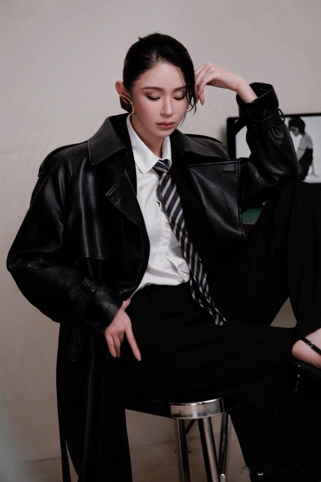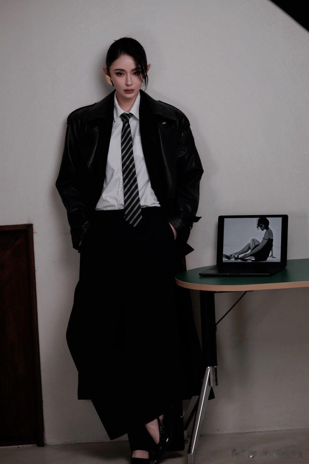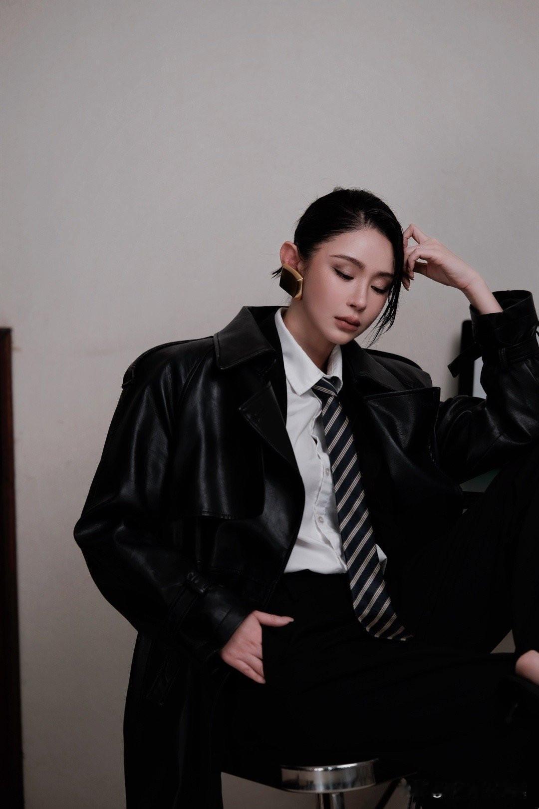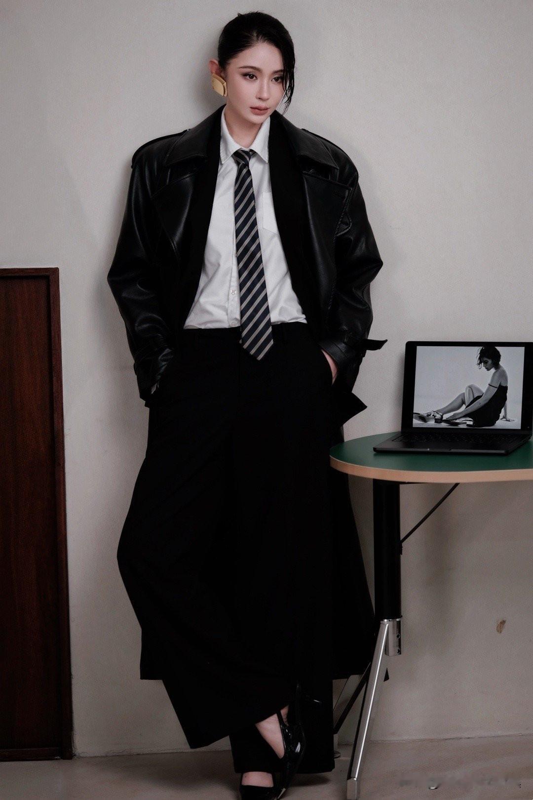 冷艳黑皮衣,都市酷女孩,时尚感爆棚!百褶裙怎样穿搭比较时尚 程梓