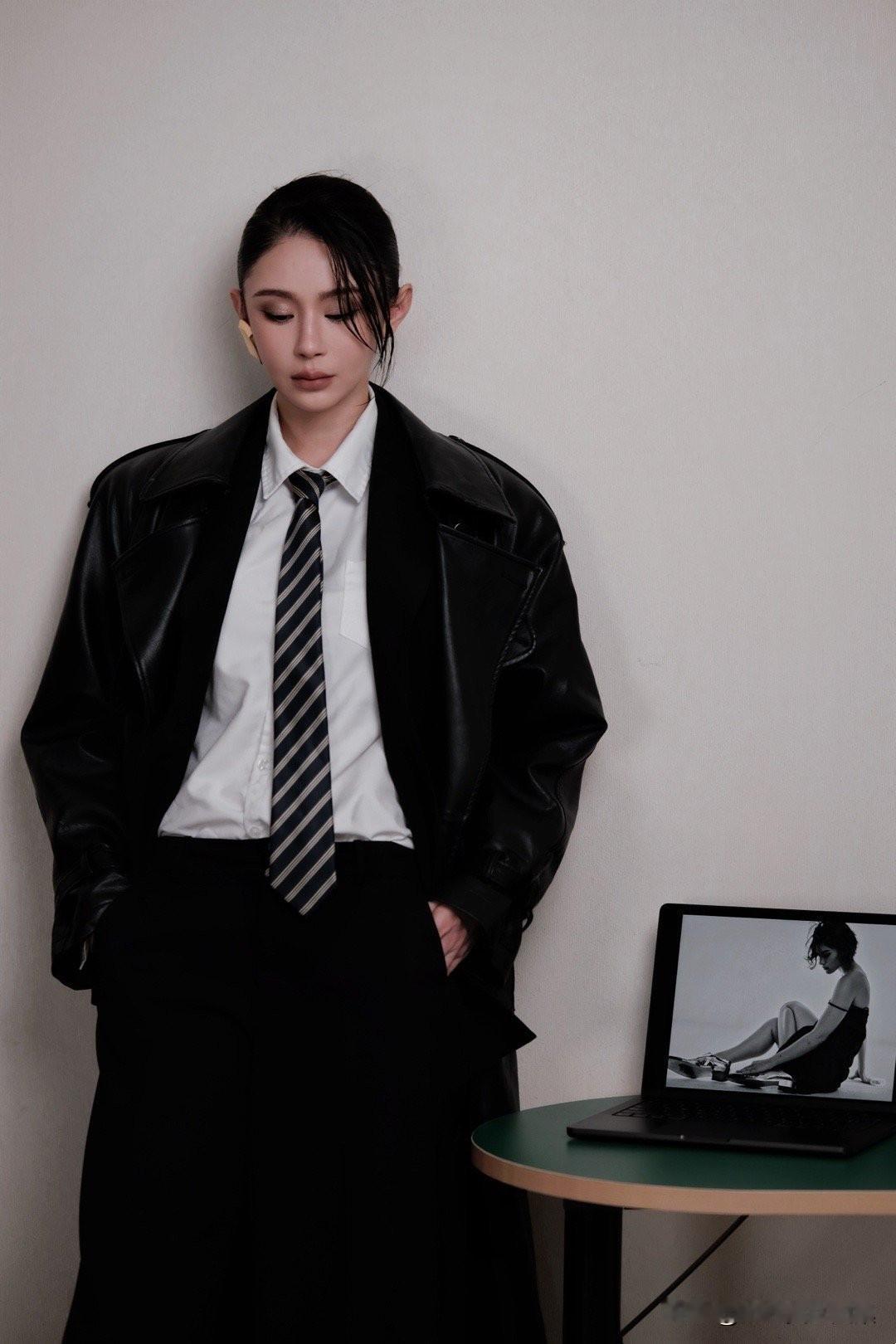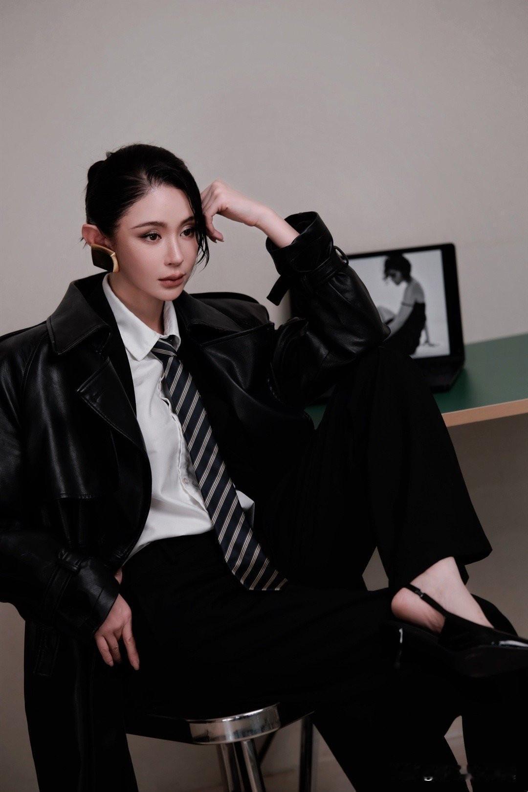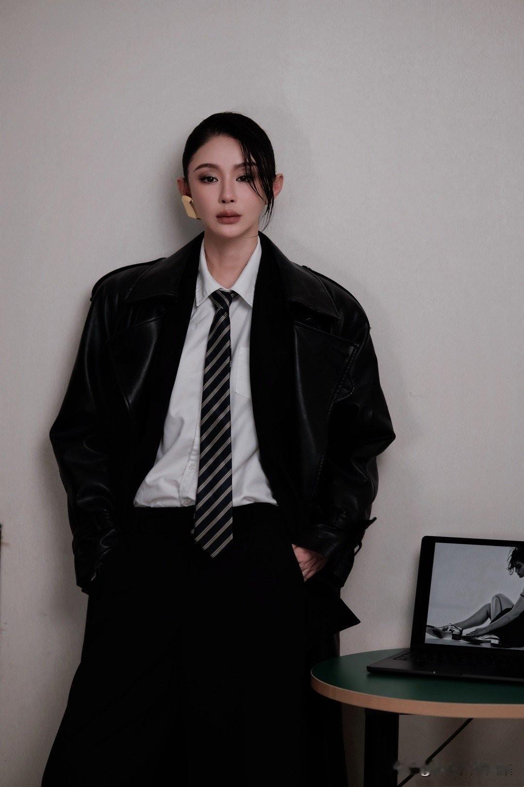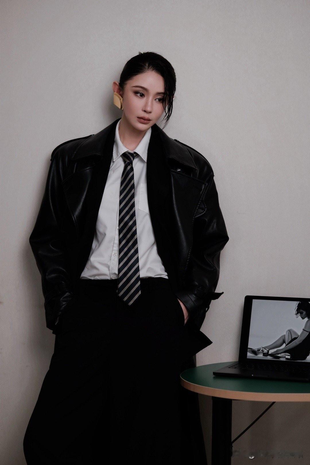冷艳黑皮衣,都市酷女孩,时尚感爆棚!百褶裙怎样穿搭比较时尚 程梓