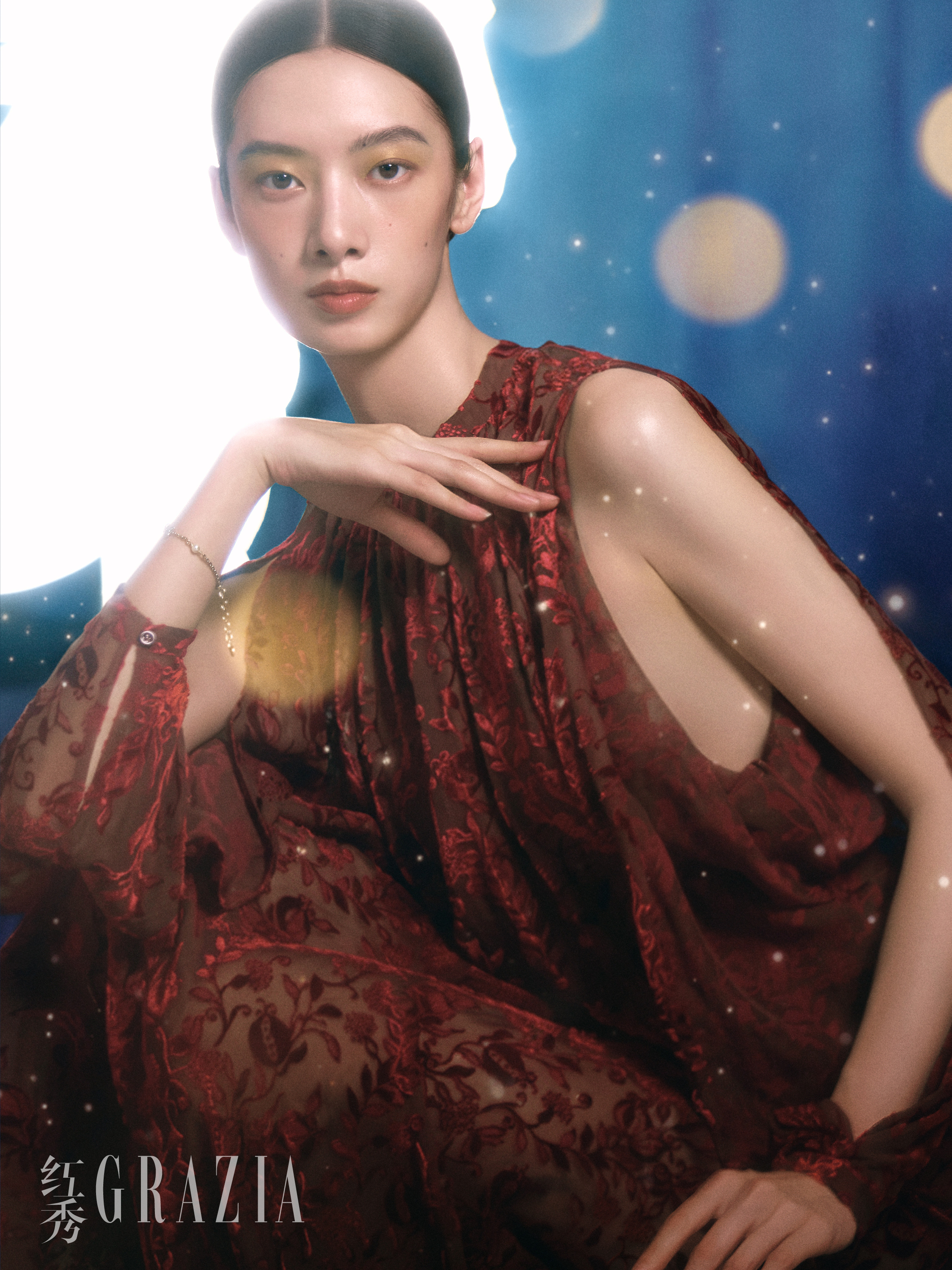项偞婧红秀封面项偞婧红秀梦幻嘉年华封面项偞婧身着Dior 2026早春系列登封,酒红丝绒长裙配莱茵石配饰,冷艳气质碰撞精致细节,尽显超模高级质感与时尚张力。