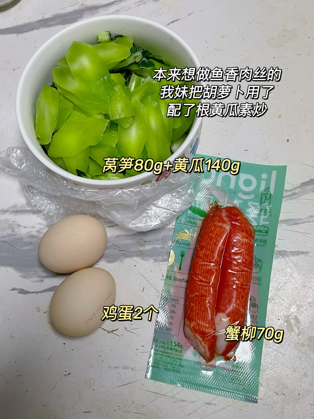 午 米饭+蟹柳滑蛋+炒莴笋黄瓜
