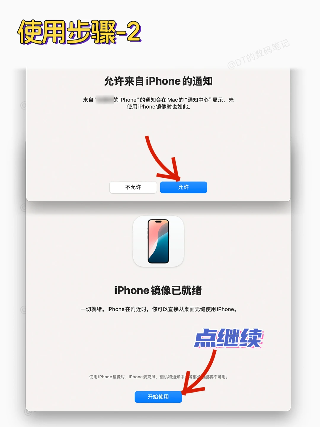 满足以上条件就可以尝试连接iPhone镜像,操作步骤在图2-5