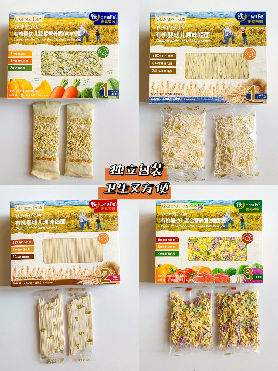 🔸独立包装的:小月龄宝宝吃得少,独立小包装会更方便取量和存储,面条不会容易受潮,也方便携带