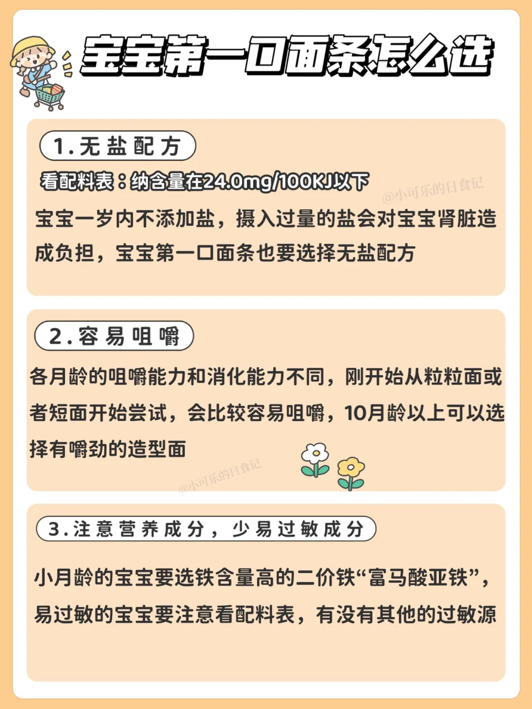 3⃣️成人面条里的维生素和钙铁锌缺乏,并且添加有盐和其他添加剂,1岁内建议还是吃符合婴标的宝宝面条