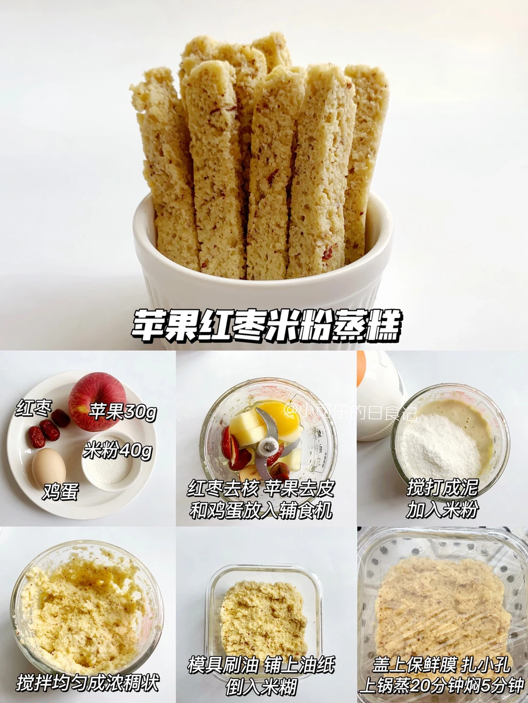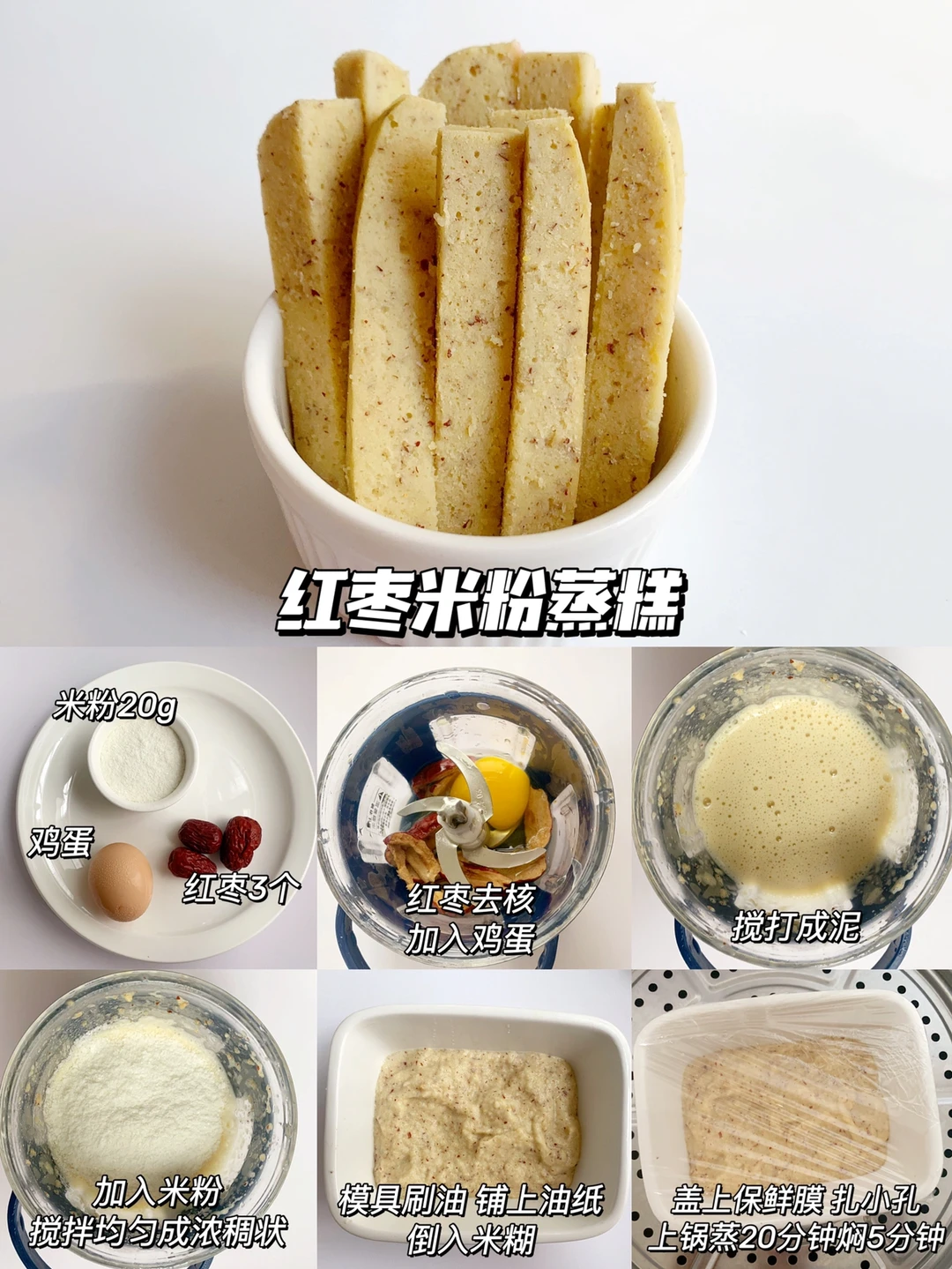 食材:红枣3个、苹果30克、鸡蛋、米粉40克