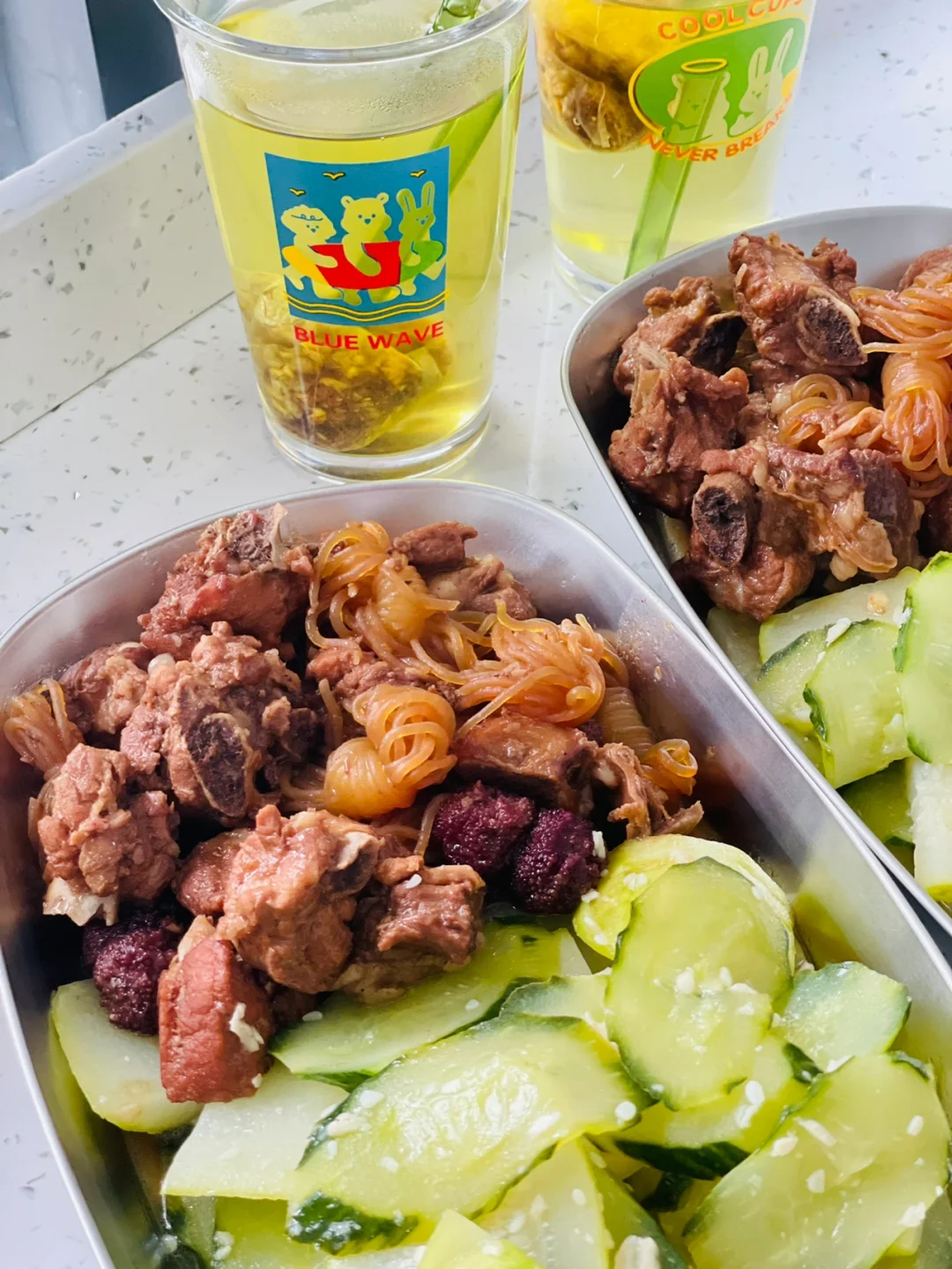 继续是杨梅排骨,因为实在太太太好吃了。 蔬菜是蒜蓉炒瓜,碳酸是魔芋结(今晚要吃螺蛳粉给自己做个热量缺口) 再喝个玉米须茶排排水肿。