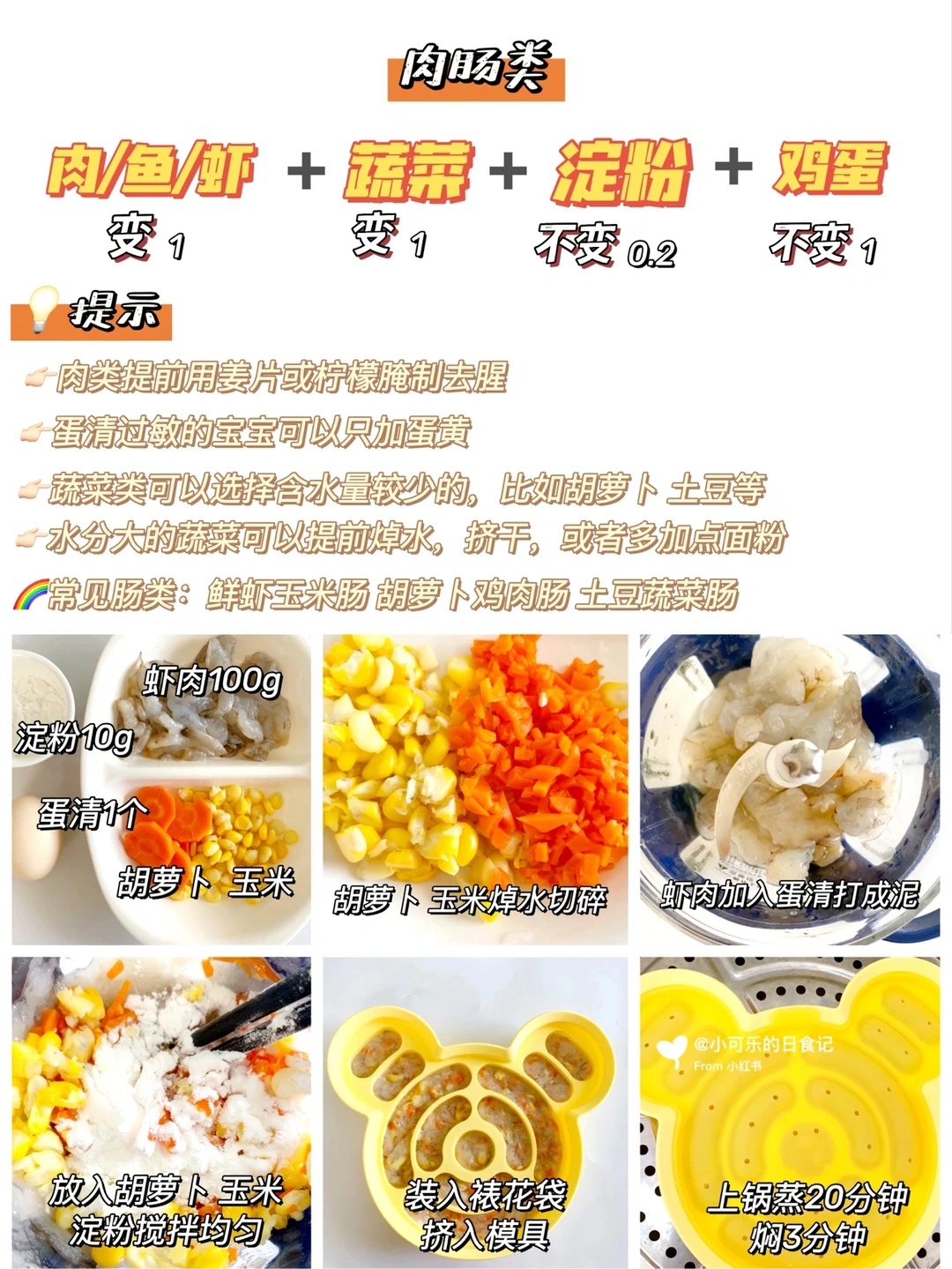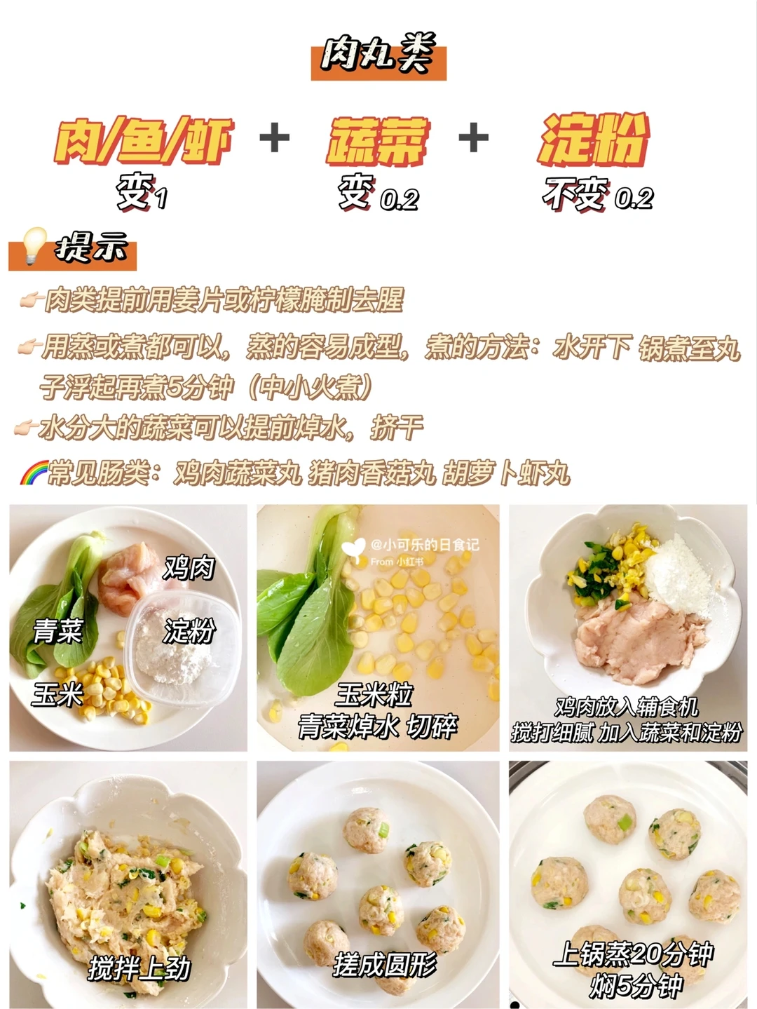 公式:肉/鱼/虾➕蔬菜➕鸡蛋➕淀粉