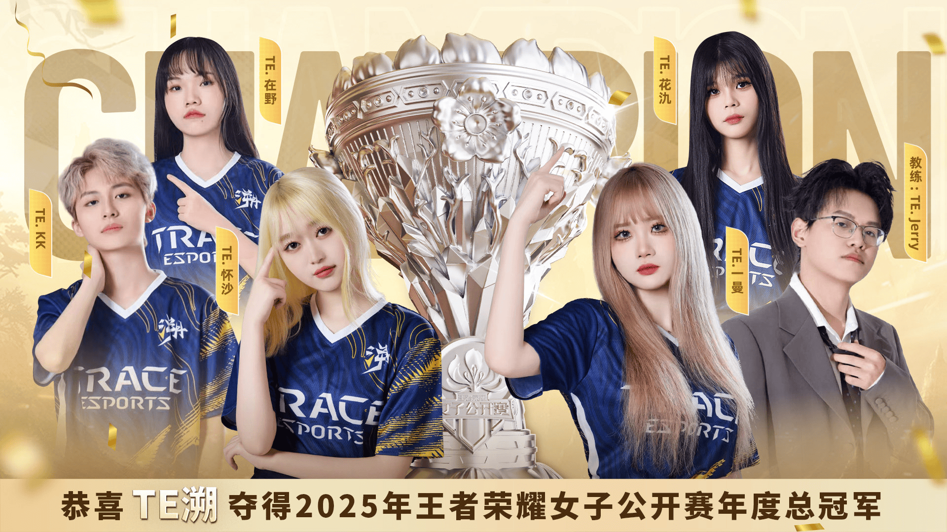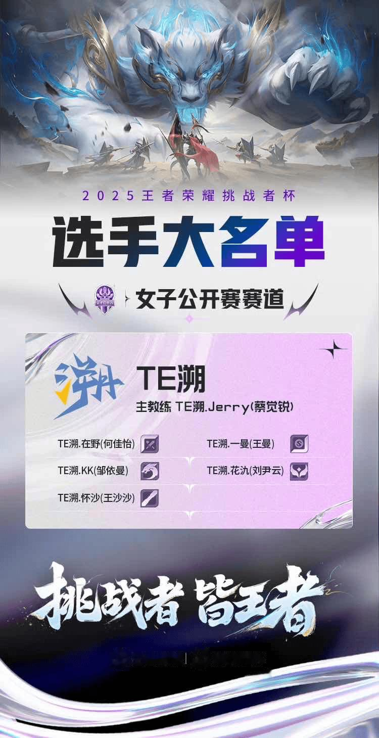 作为王者荣耀官方唯一女子专业电竞赛事,本届女子公开赛总决赛总奖金高达100万元,汇聚6支顶尖战队同台竞技。TE溯能突出重围,离不开队员们的默契配合:TE.怀沙两度斩获FMVP,中路的深厚功底搭配多英雄大国标、TE.一曼的强力输出、TE.花汣的灵动支援、TE.在野的边路博弈、TE.KK的野区掌控,让战队形成“统治级”战力,成为女子电竞的标杆。