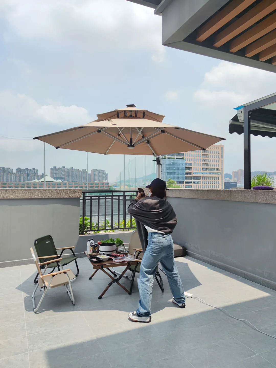 白云区恢复办公的一周 上班除了摸鱼不妨试一下烤肉 撑起扇,带上凳。办公室露台烤肉整起来
